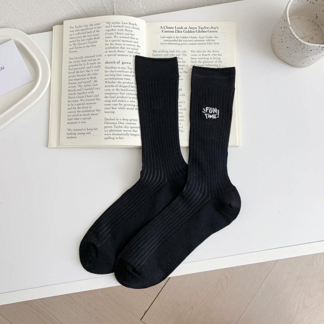 25 양말 여성 자수 편지 중간 양말 여성 양말 봄과 여름 캐주얼 메쉬 얇은 더미 양말 발레 스타일 송아지 양말