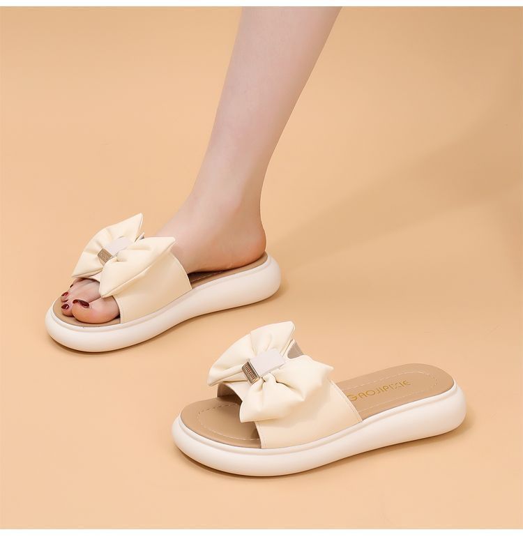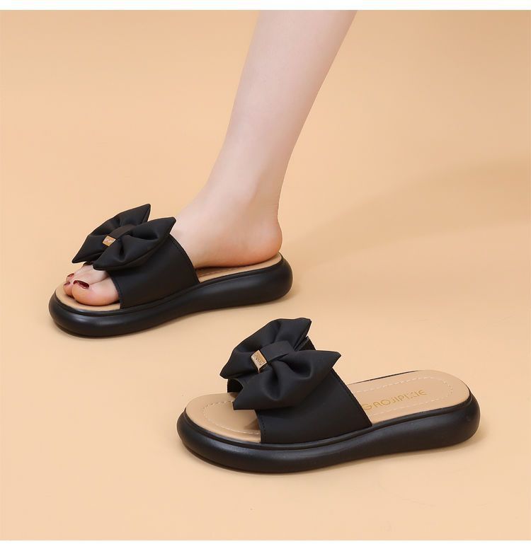 2025년 여름 신상 여성화 두꺼운 밑창 오픈 토 심플 클래식 원라인 보우 한국식 비치 엄마 샌들