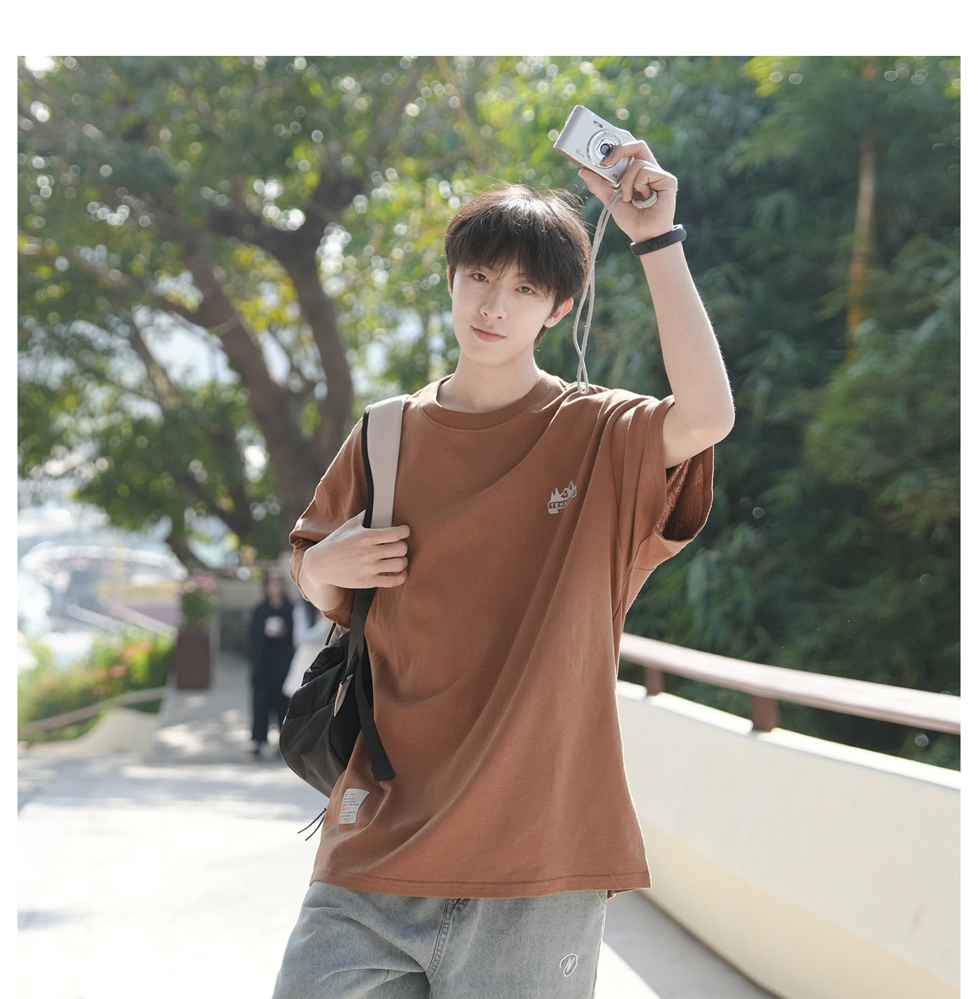 공장 직접 공급 220g 헤비급 풍경 프린트 남성용 반팔 티셔츠 여름 루즈하고 다재다능한 순면 반팔 탑