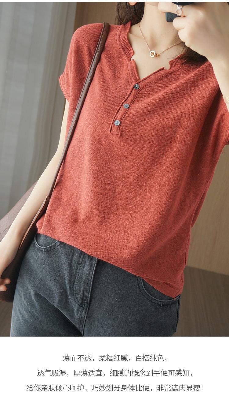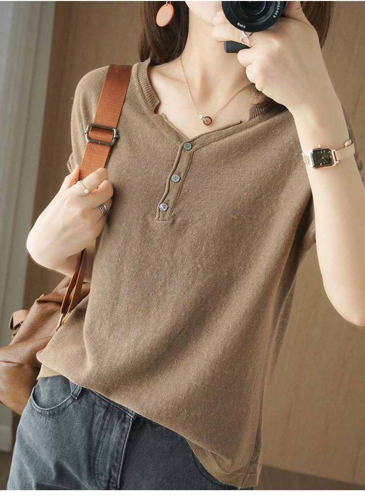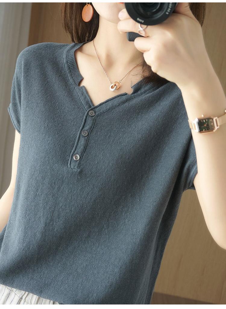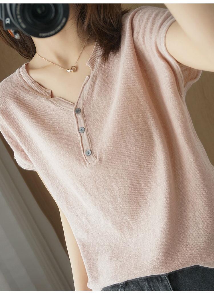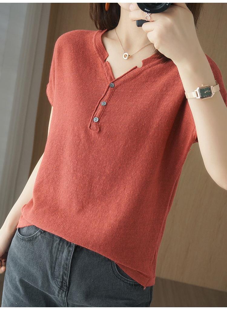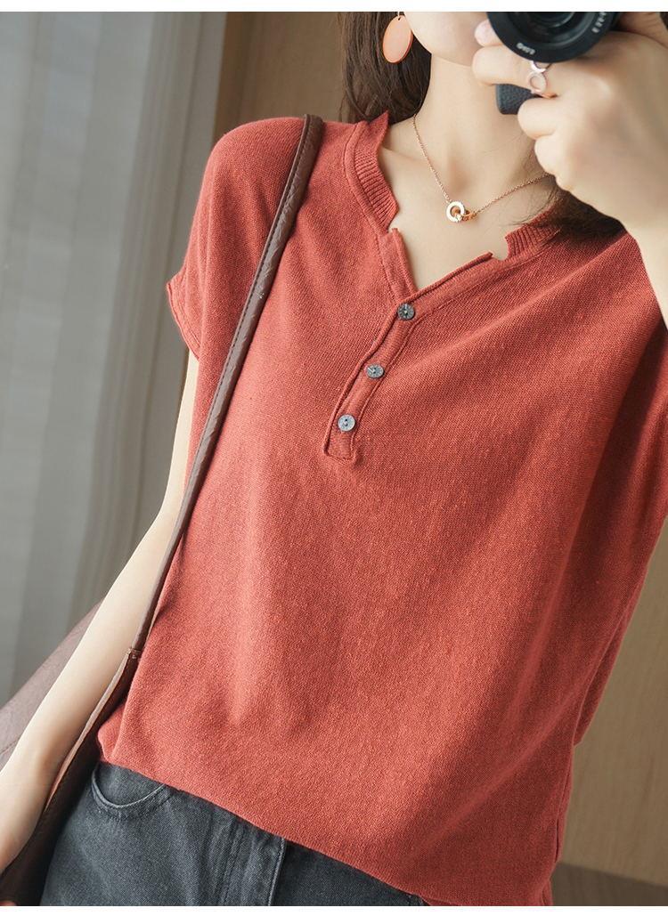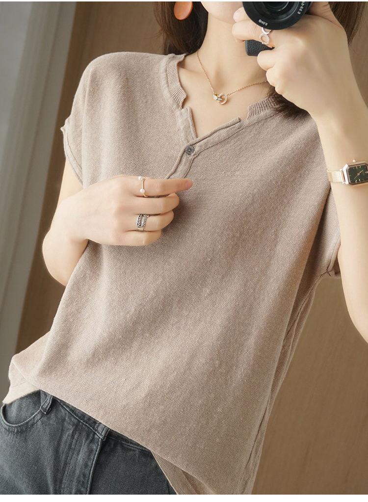 뉴 코튼 반팔 여성용 솔리드 컬러 니트 여성용 V 넥 코튼 앤 리넨 티셔츠 플러스 사이즈 한국식 보토밍 여름 반소매 탑스토어 가기