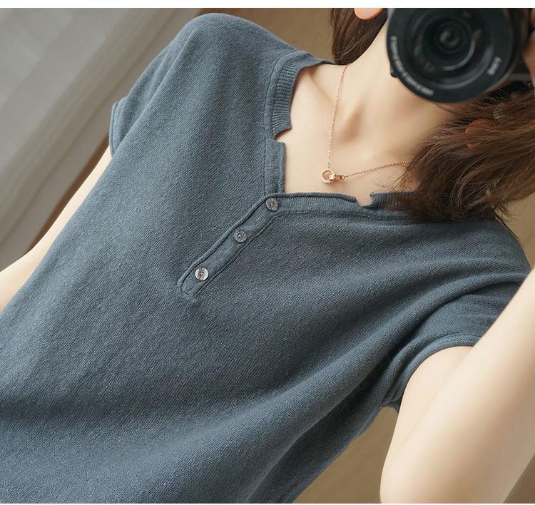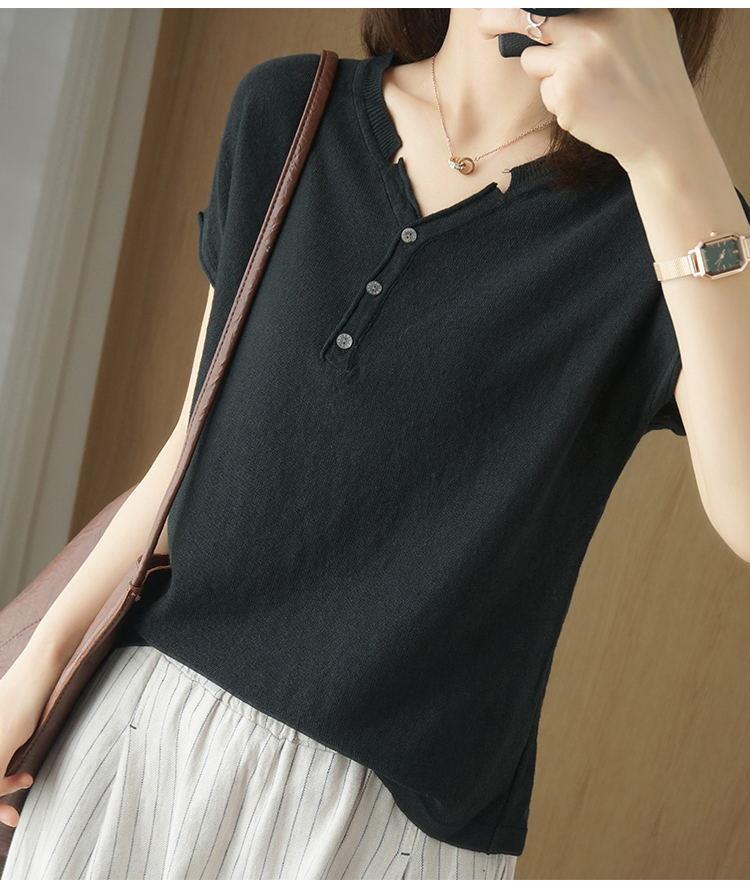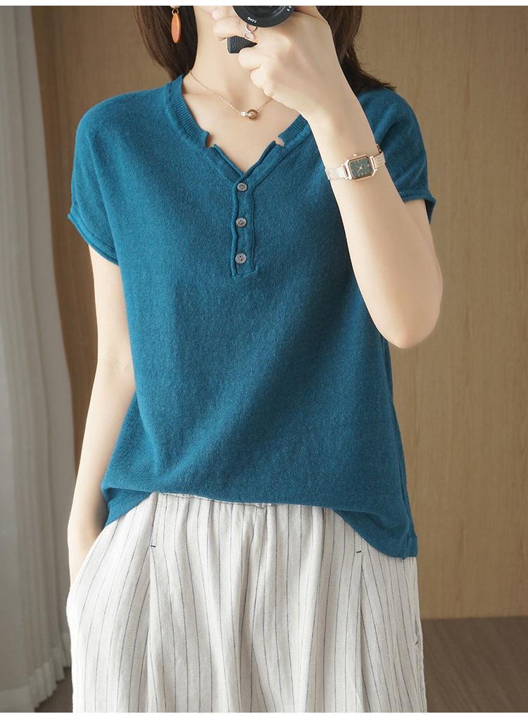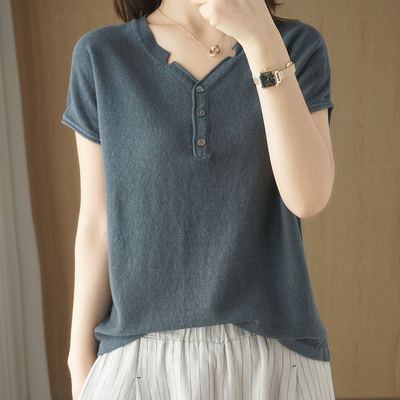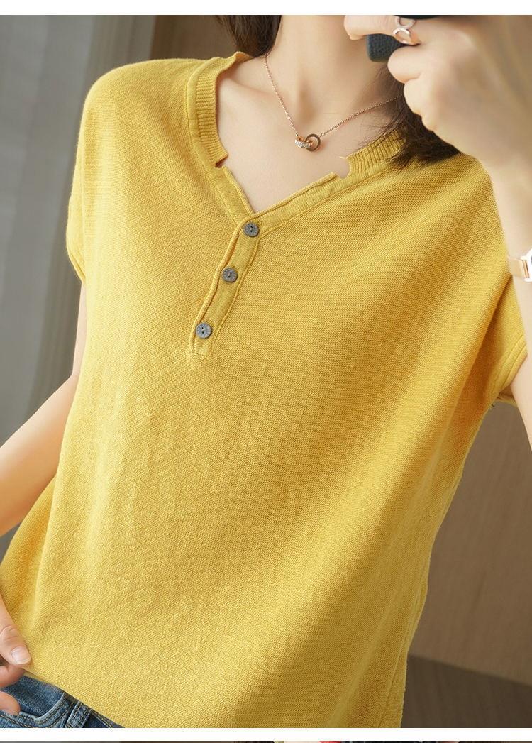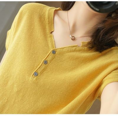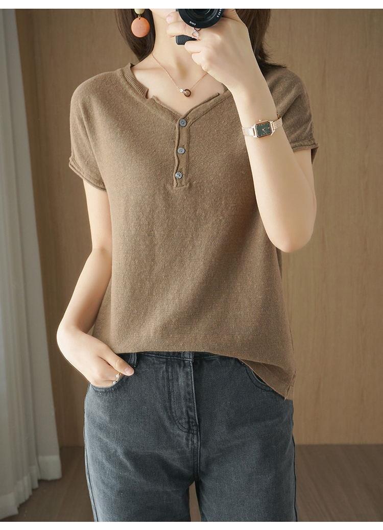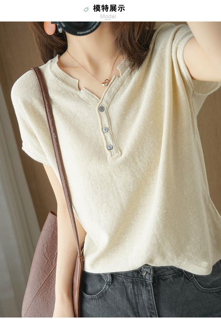 뉴 코튼 반팔 여성용 솔리드 컬러 니트 여성용 V 넥 코튼 앤 리넨 티셔츠 플러스 사이즈 한국식 보토밍 여름 반소매 탑스토어 가기