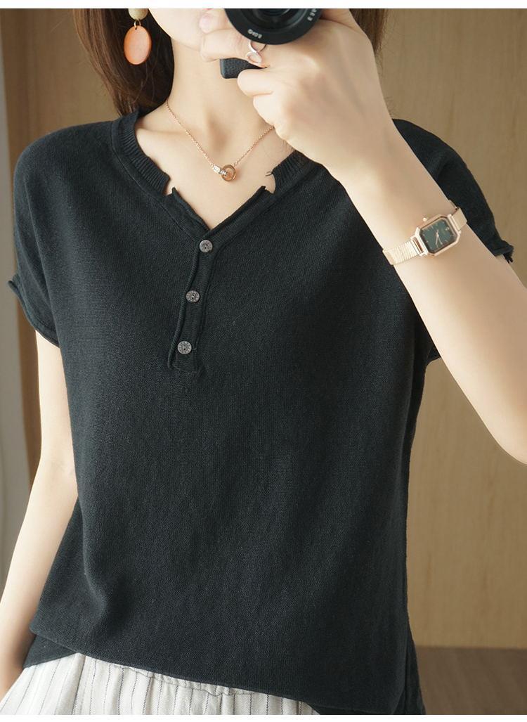 뉴 코튼 반팔 여성용 솔리드 컬러 니트 여성용 V 넥 코튼 앤 리넨 티셔츠 플러스 사이즈 한국식 보토밍 여름 반소매 탑