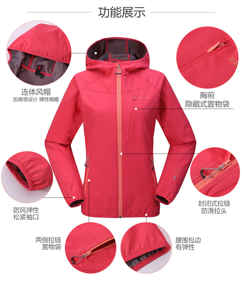 REDELK Red Elk 라이트 럭셔리 이탈리아 야외 소프트 쉘 코트 여성 슬림 후드 패션 자켓 방풍 ALINE
