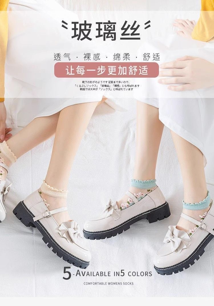 봄 여름 작은 꽃무늬 스타킹 일본식 단관 멀티 컬러 투명 양말 걸림 방지 내구성 땀 흡수 양말 얇은 보트 양말
