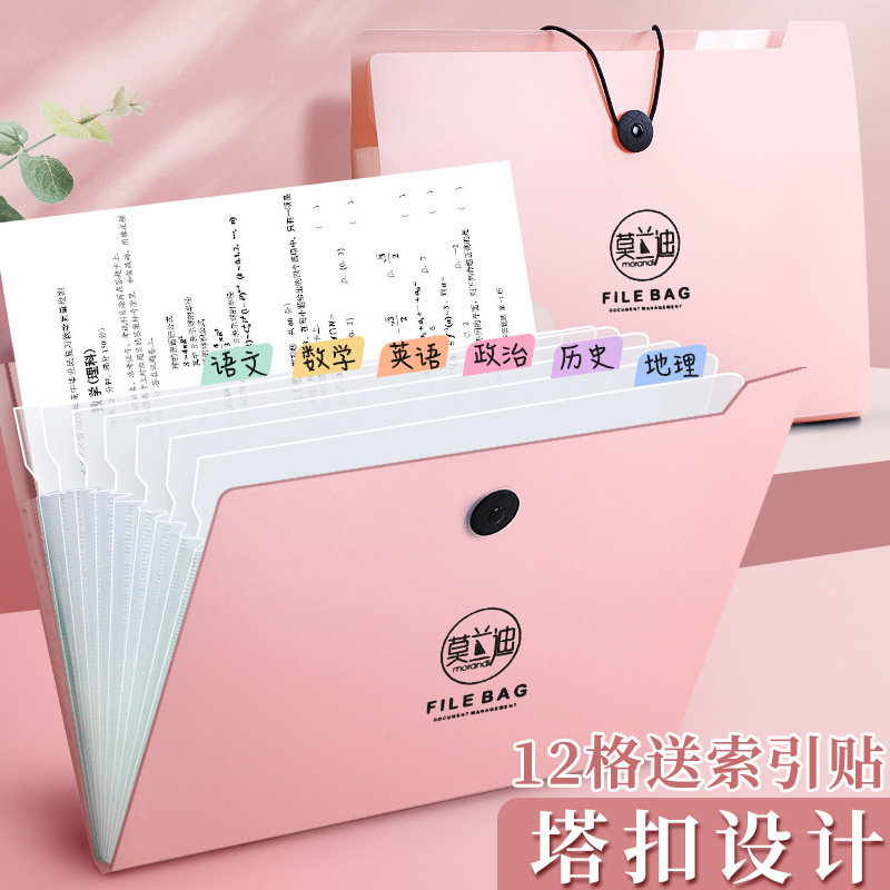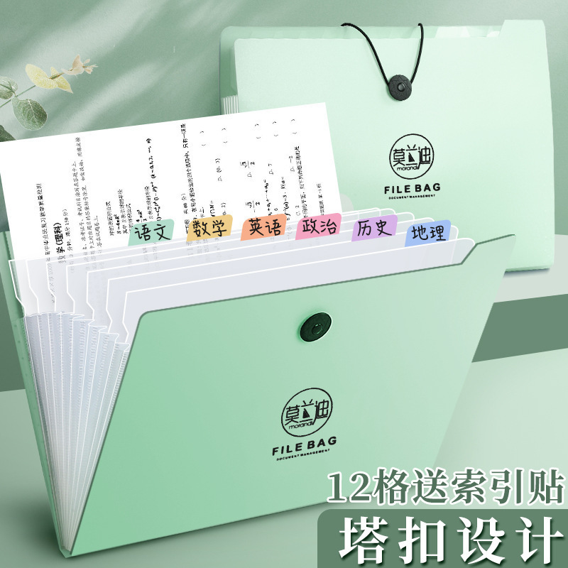 Morandi A4 파일 다층 저장 테스트 종이 홀더 오르간 가방 학생 테스트 종이 홀더 파일 마무리 파일 가방