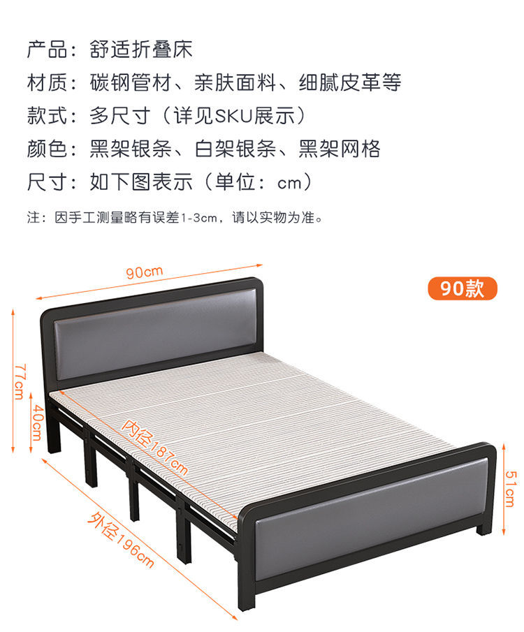 접이식 침대, 가정용 더블 침대, 임대 주택, 점심 시간 및 낮잠, 간단하고 휴대 가능한 성인 철제 침대, 튼튼하고 내구성이 뛰어난 싱글 침대스토어 가기