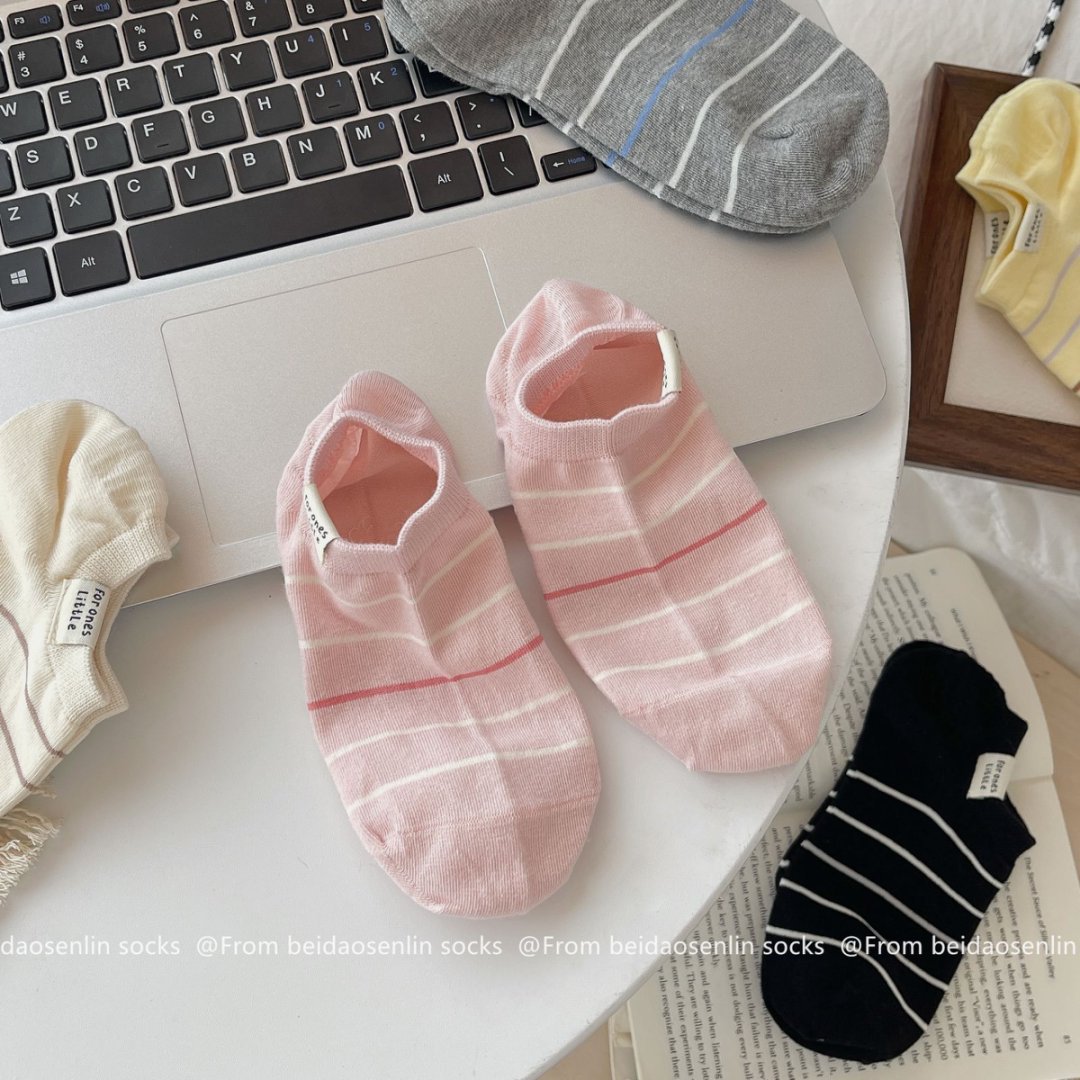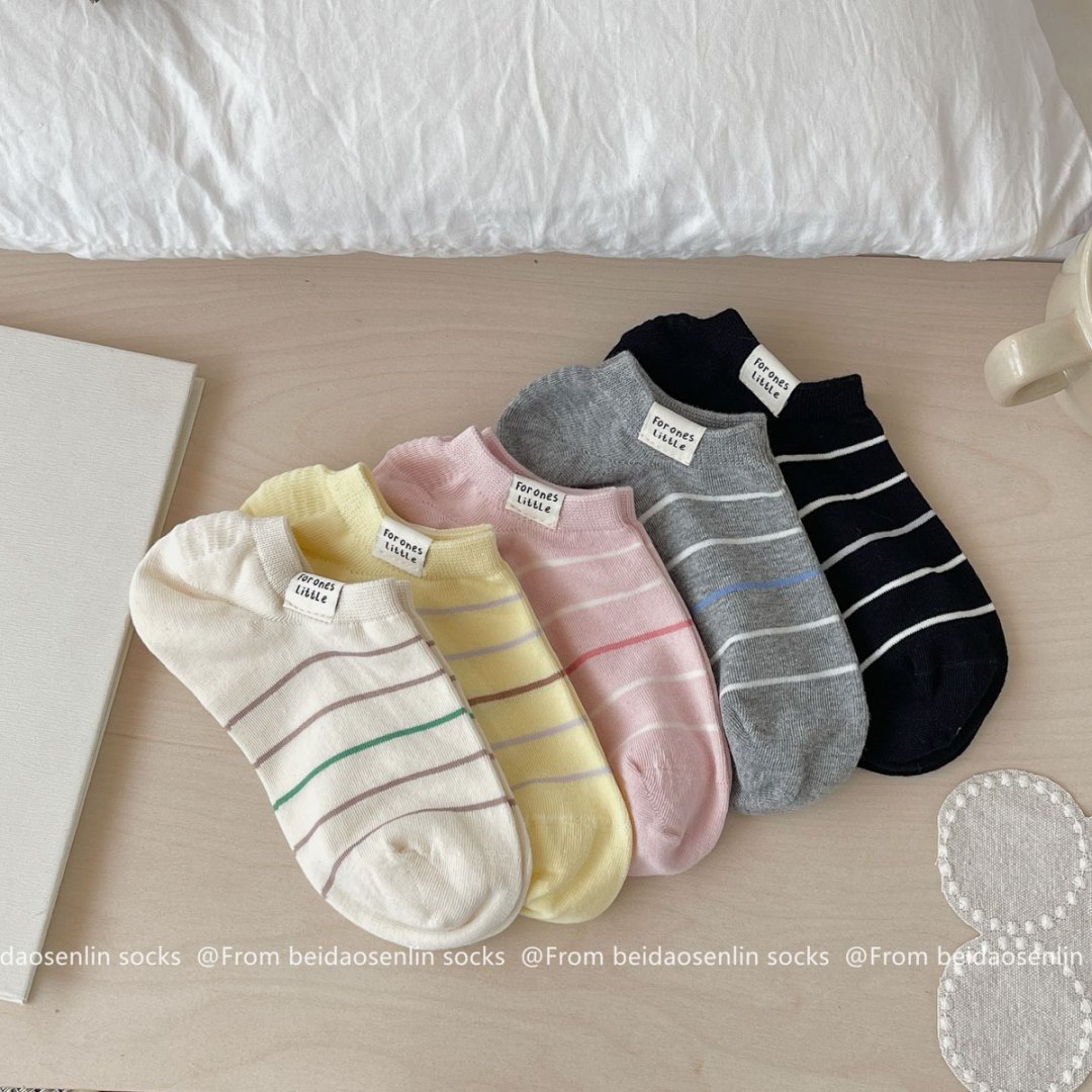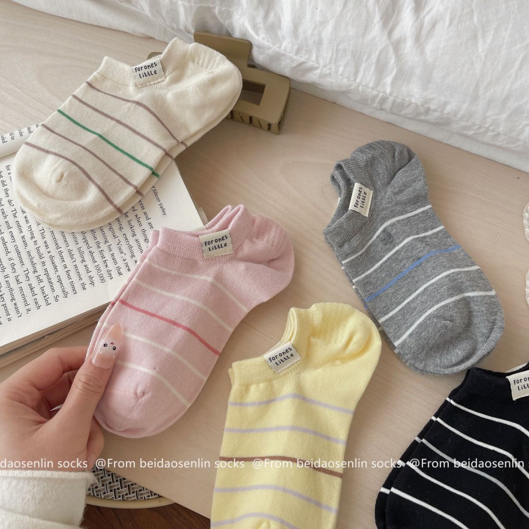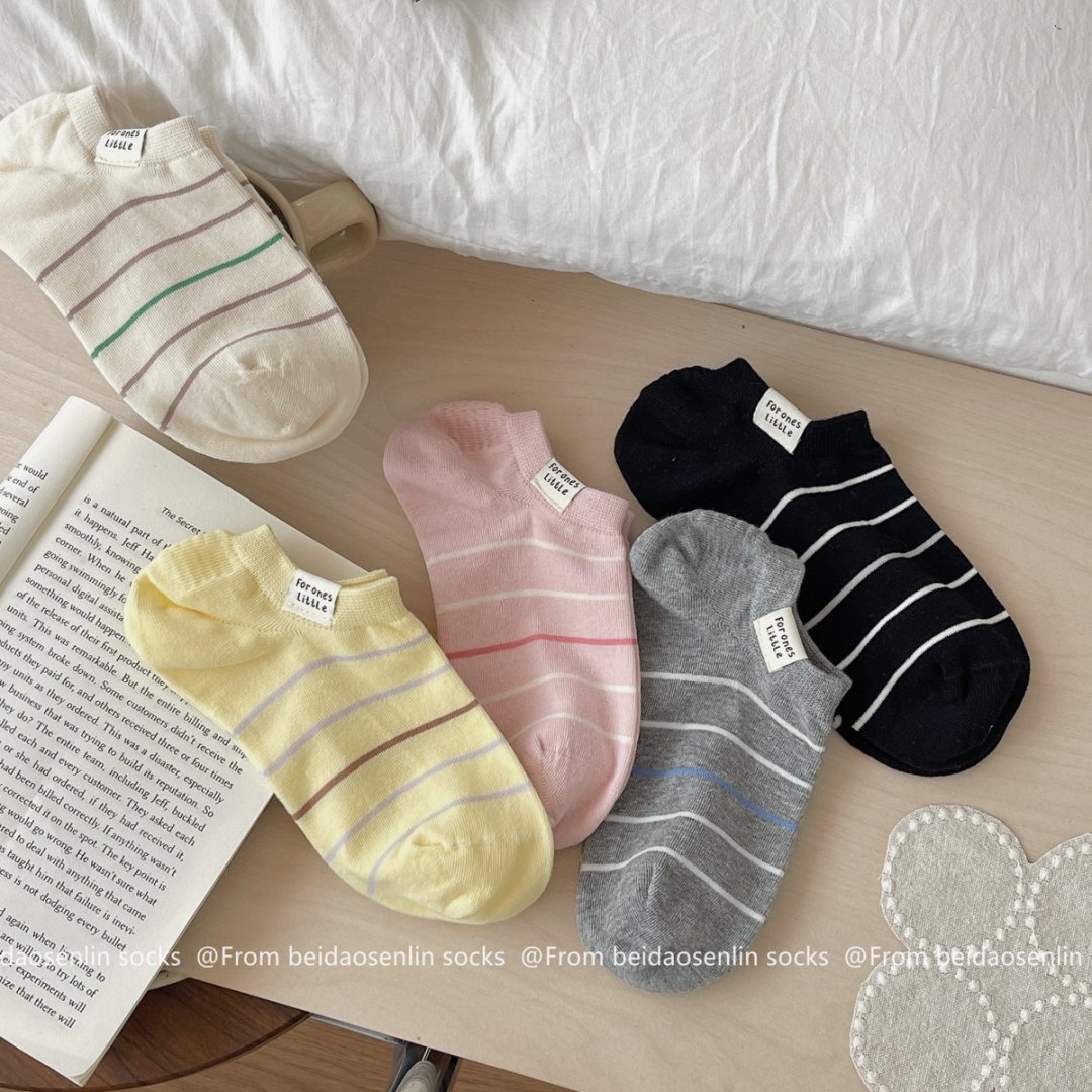 양말 여성용 얕은 탑 보트 양말 봄과 여름 캔디 컬러 칼리지 스타일 줄무늬 천 라벨 안티 드롭 및 보이지 않는 양말 여성을위한 간단한 올 매치스토어 가기
