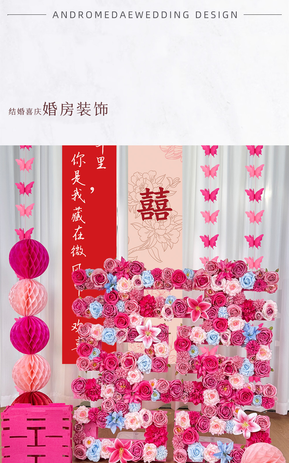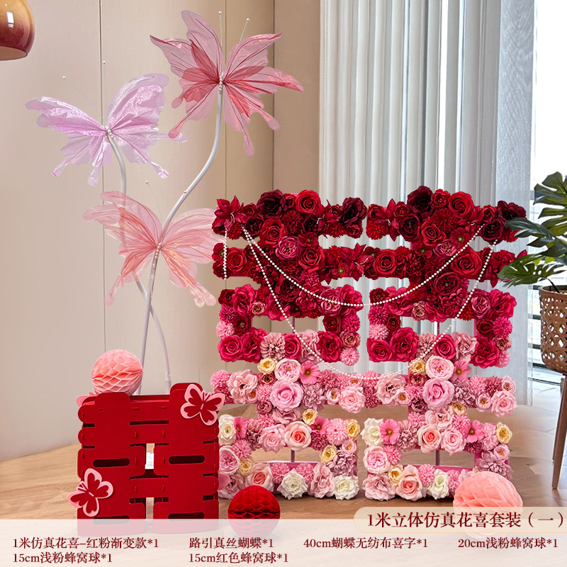 웨딩 장식 DIY 시뮬레이션 꽃 3 차원 행복한 단어 장식품 약혼 행사 레이아웃 웨딩 룸 유형 단어 도로 가이드 꽃다발 소품