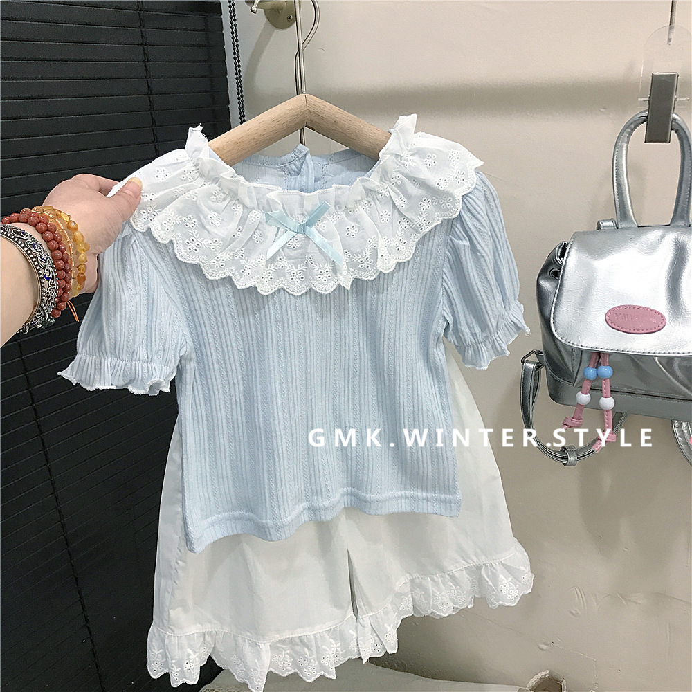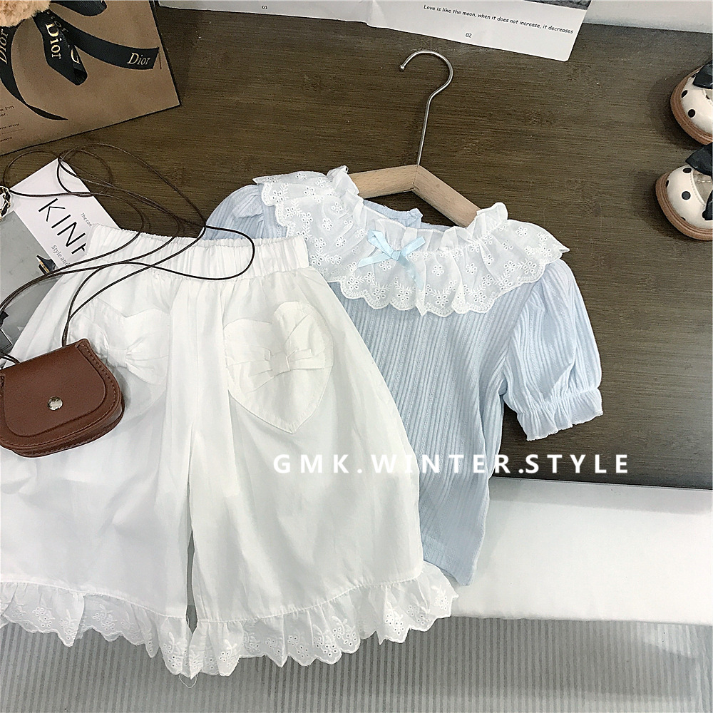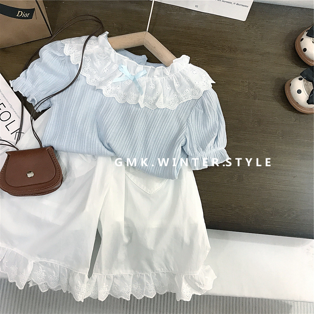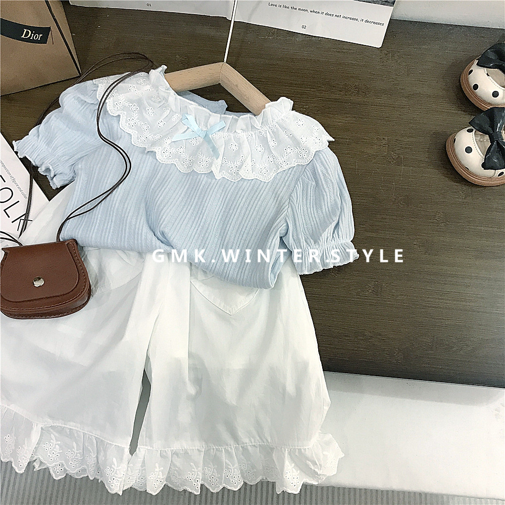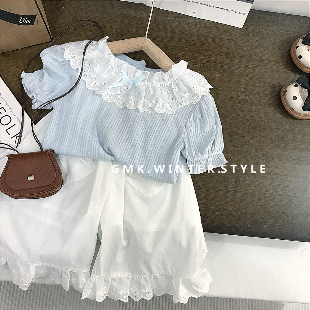 여름 모리 소녀의 아기 화이트 레이스 스트레이트 다리 바지 넓은 다리 바지 어린이 바지 얇은 여성 대외 무역스토어 가기