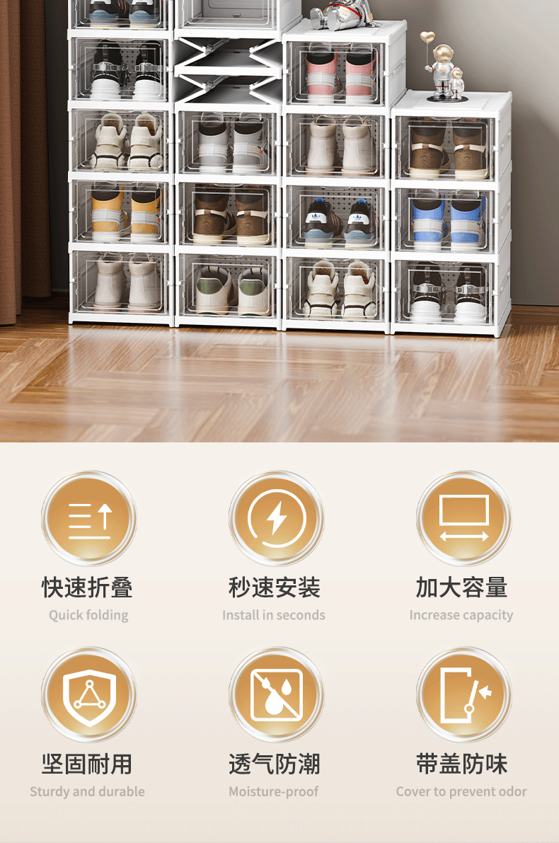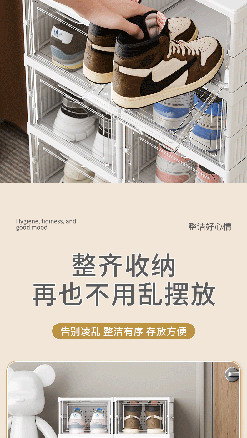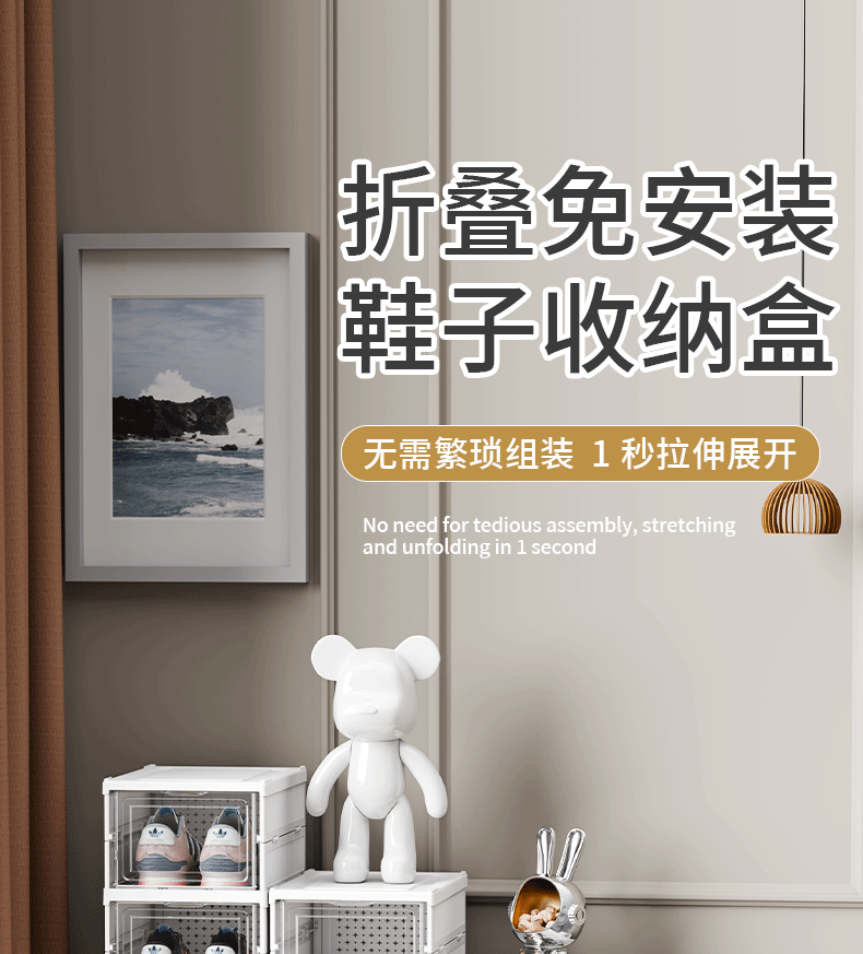 Wow 맞춤형 접이식 신발장 설치가 필요없는 신발 상자 가정용 방진 투명 신발 보관 캐비닛 접이식 신발 상자