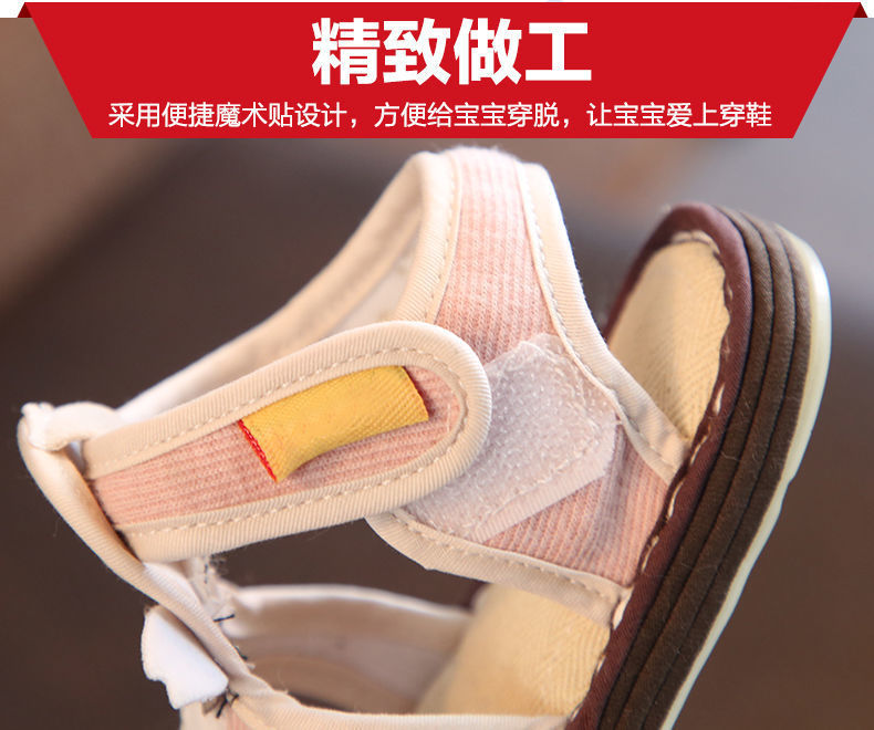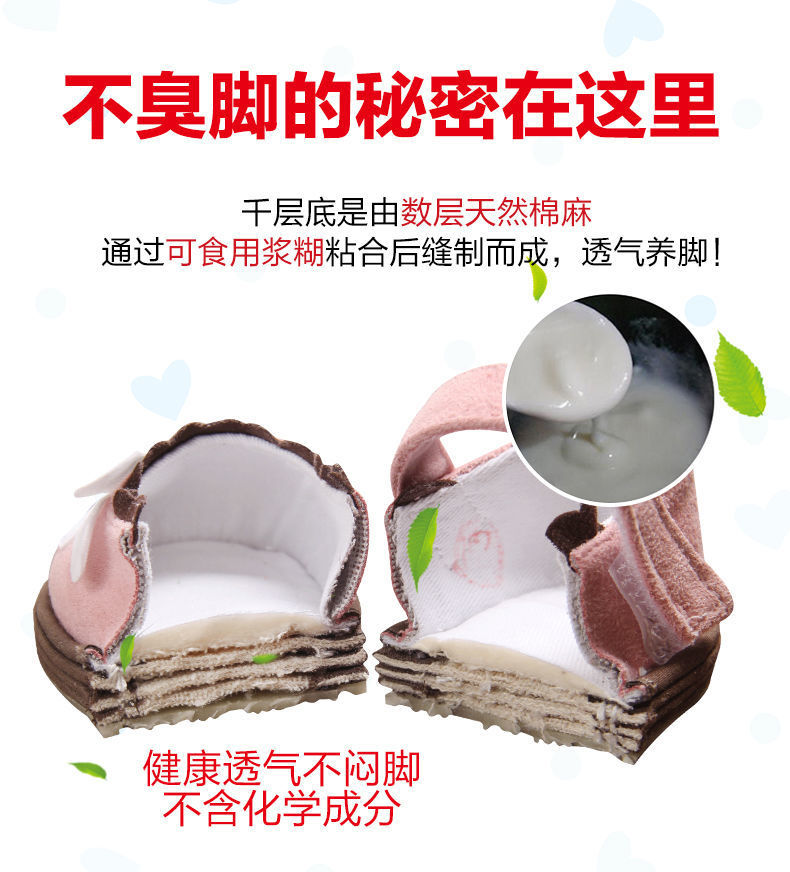 Jindouzi 1-3 세 아기 수제 천 신발 아기 천 샌들 소녀 공주 스타일 천 겹 부드러운 밑창 미끄럼 방지 2 여름
