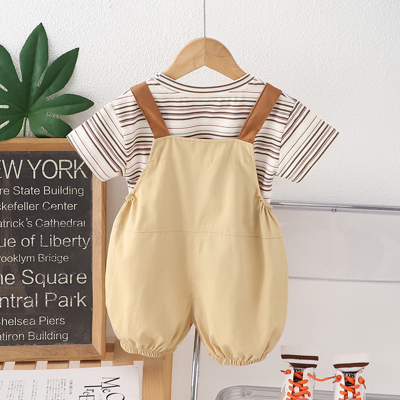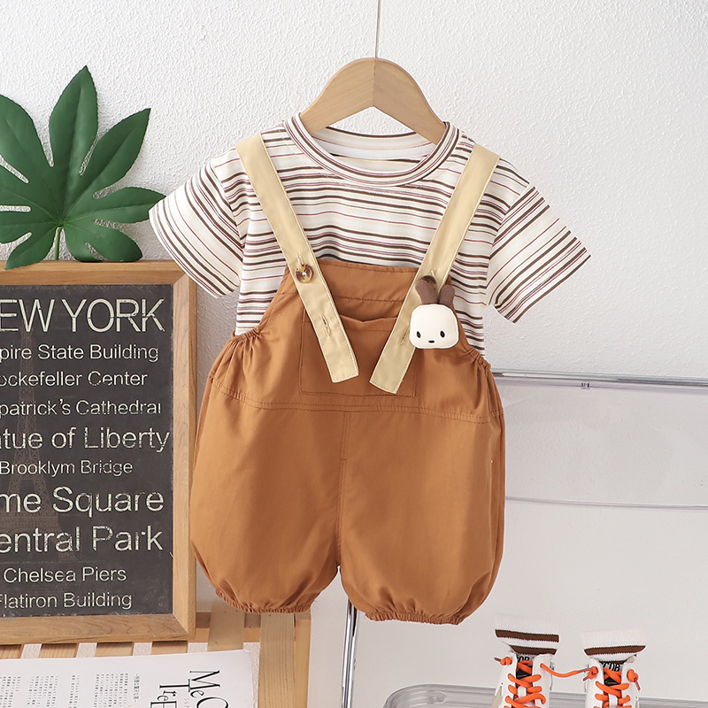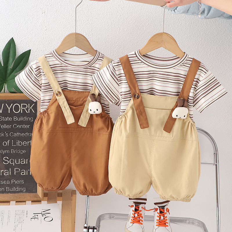 소년과 소녀 인형 토끼 작업복 여름 반팔 2025 새로운 맞춤형 투피스 아동 의류 여름 만화스토어 가기