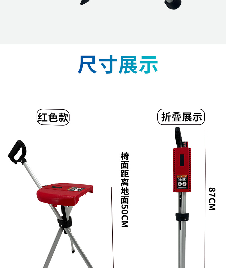 새로운 다기능 수동 접이식 지팡이 의자, 미끄럼 방지 휴대용 지팡이 의자, 노인용 야외 지팡이 의자스토어 가기