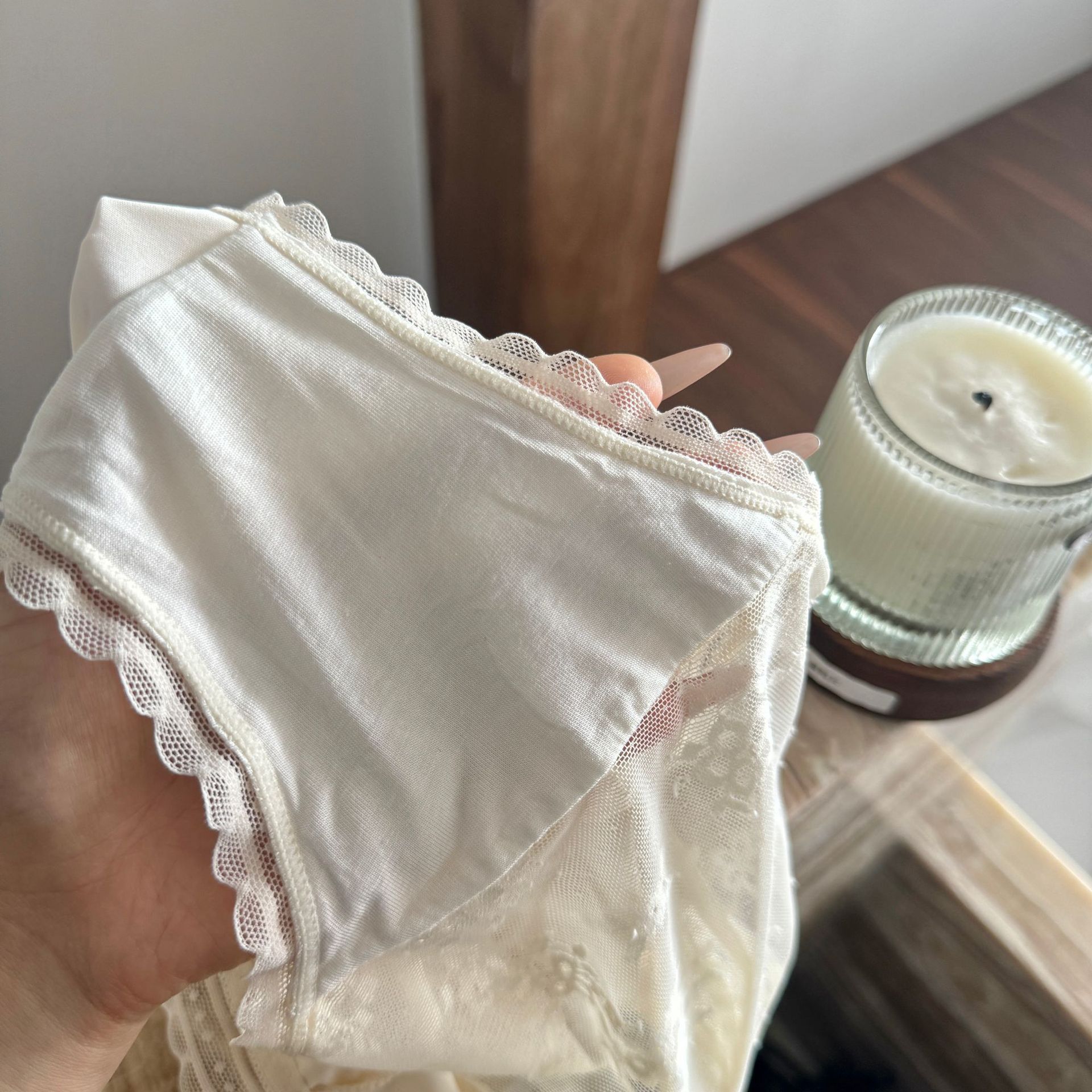 프랑스 스타일 순수한 투명한 소녀의 속옷 중간 허리 활 레이스 실크면 속옷 여성의 얇은 여름 속옷
