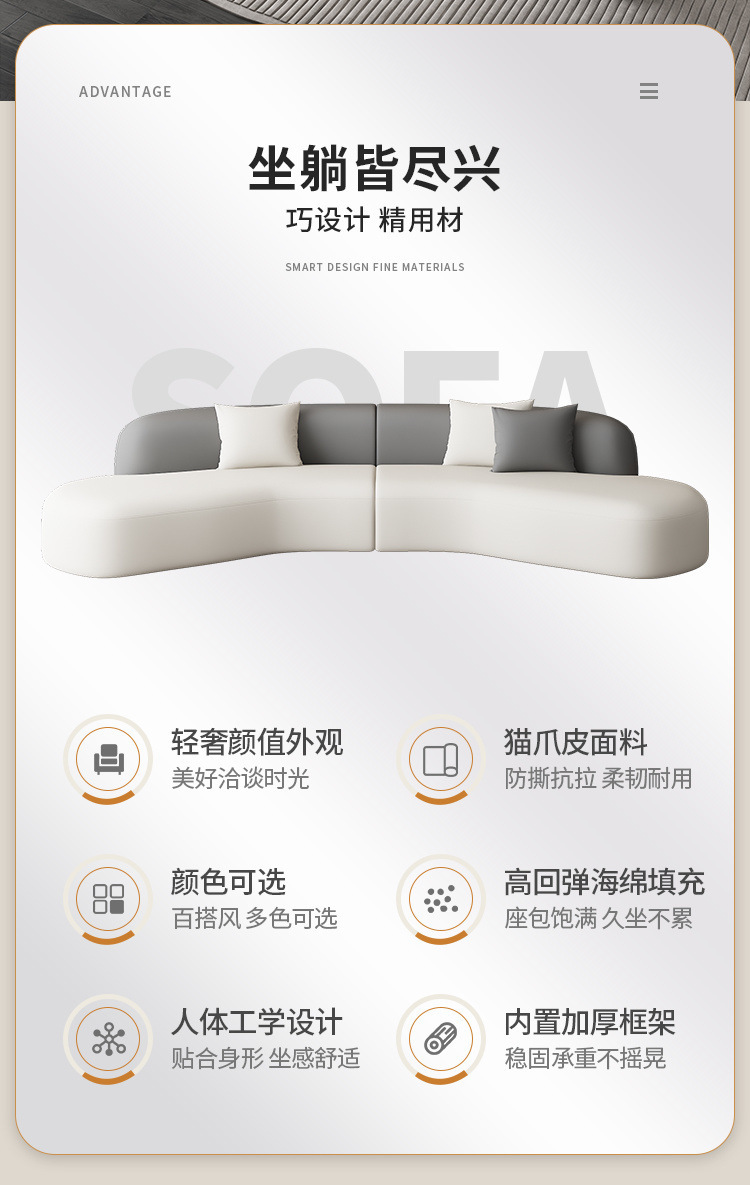 • 280CM 소파 + 게 의자 + 커피 테이블 조합