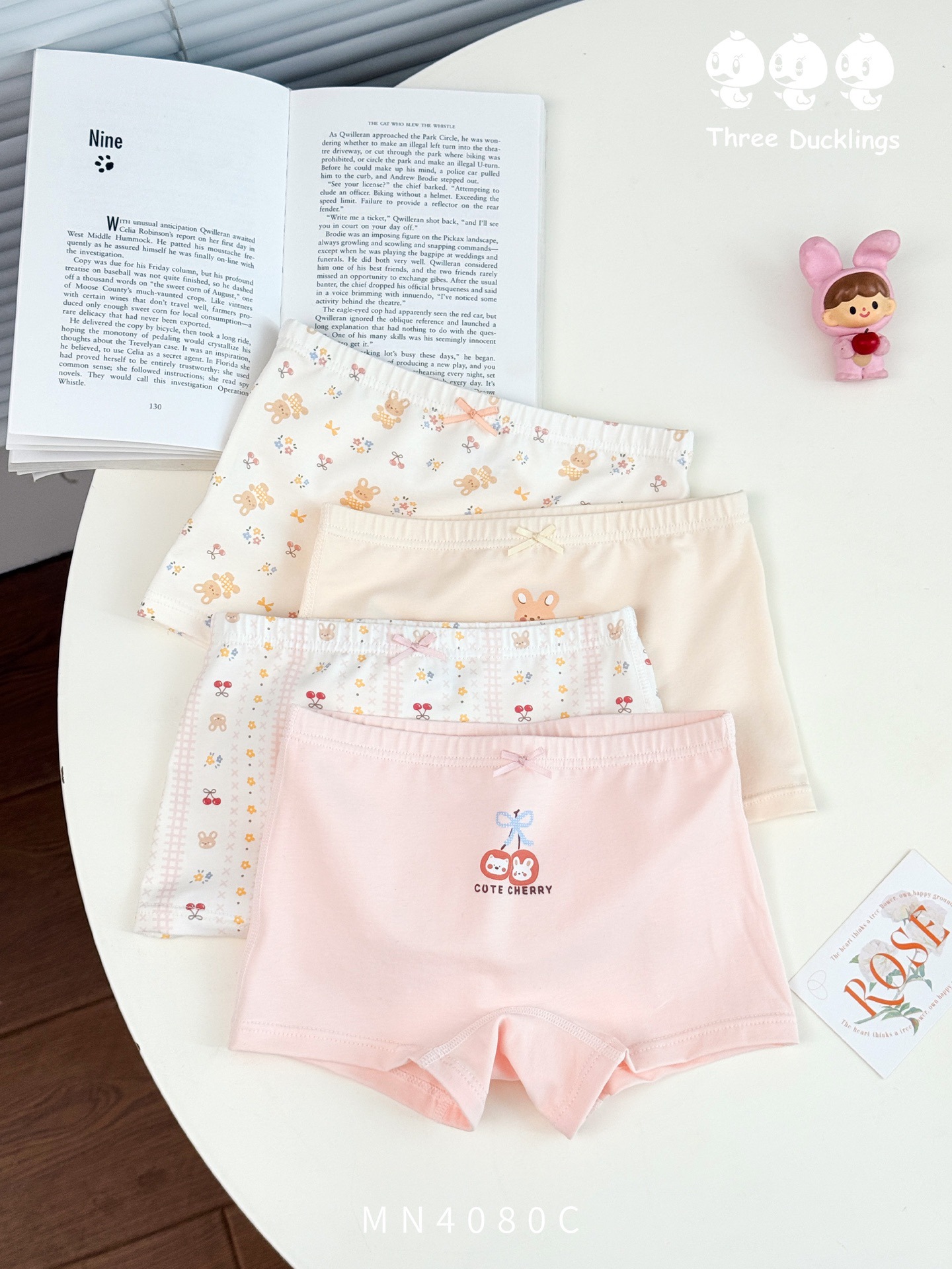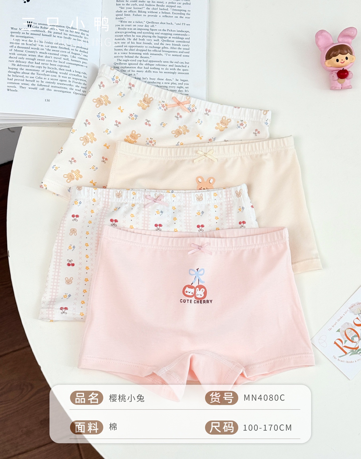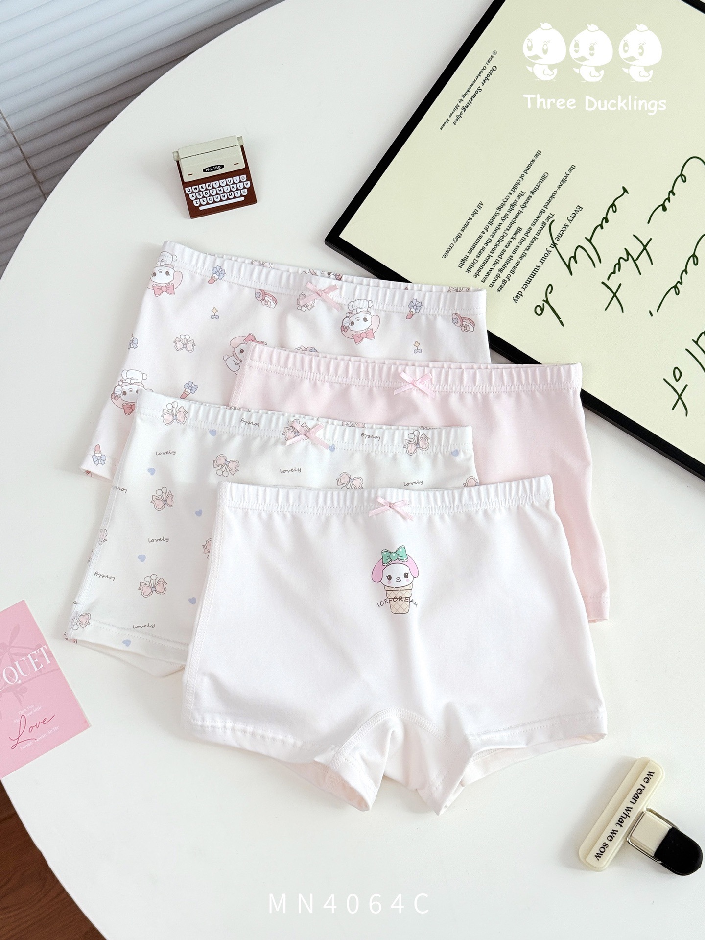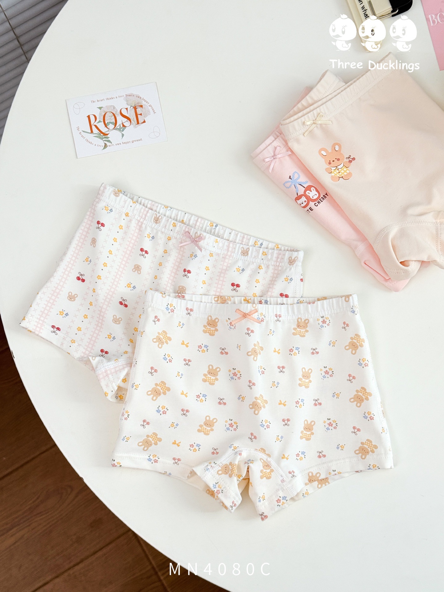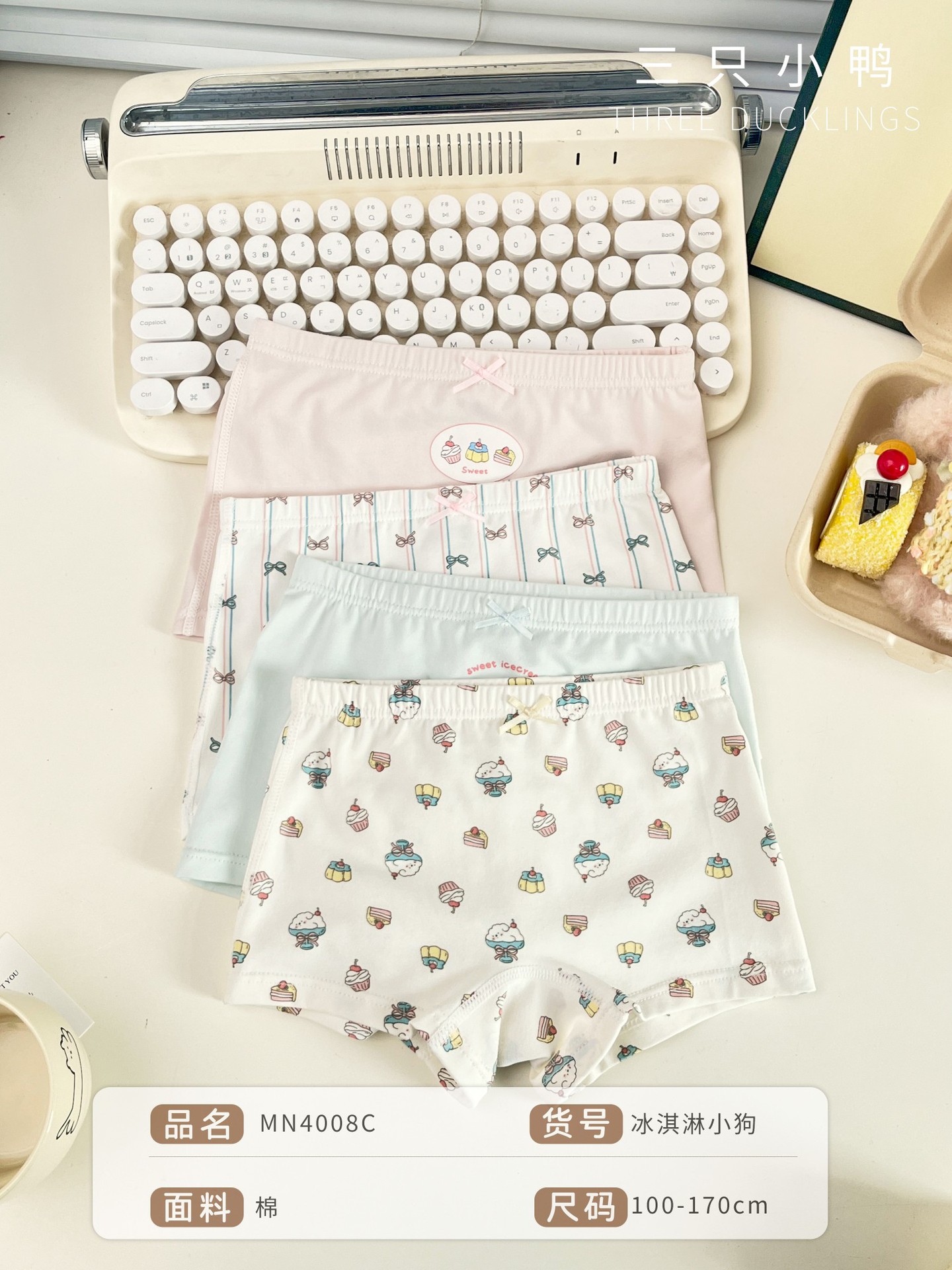 세 오리 새끼 새 어린이 속옷 편안한 피부 친화적 인 4 팩 소녀 95 코튼 복서 반바지 만화스토어 가기