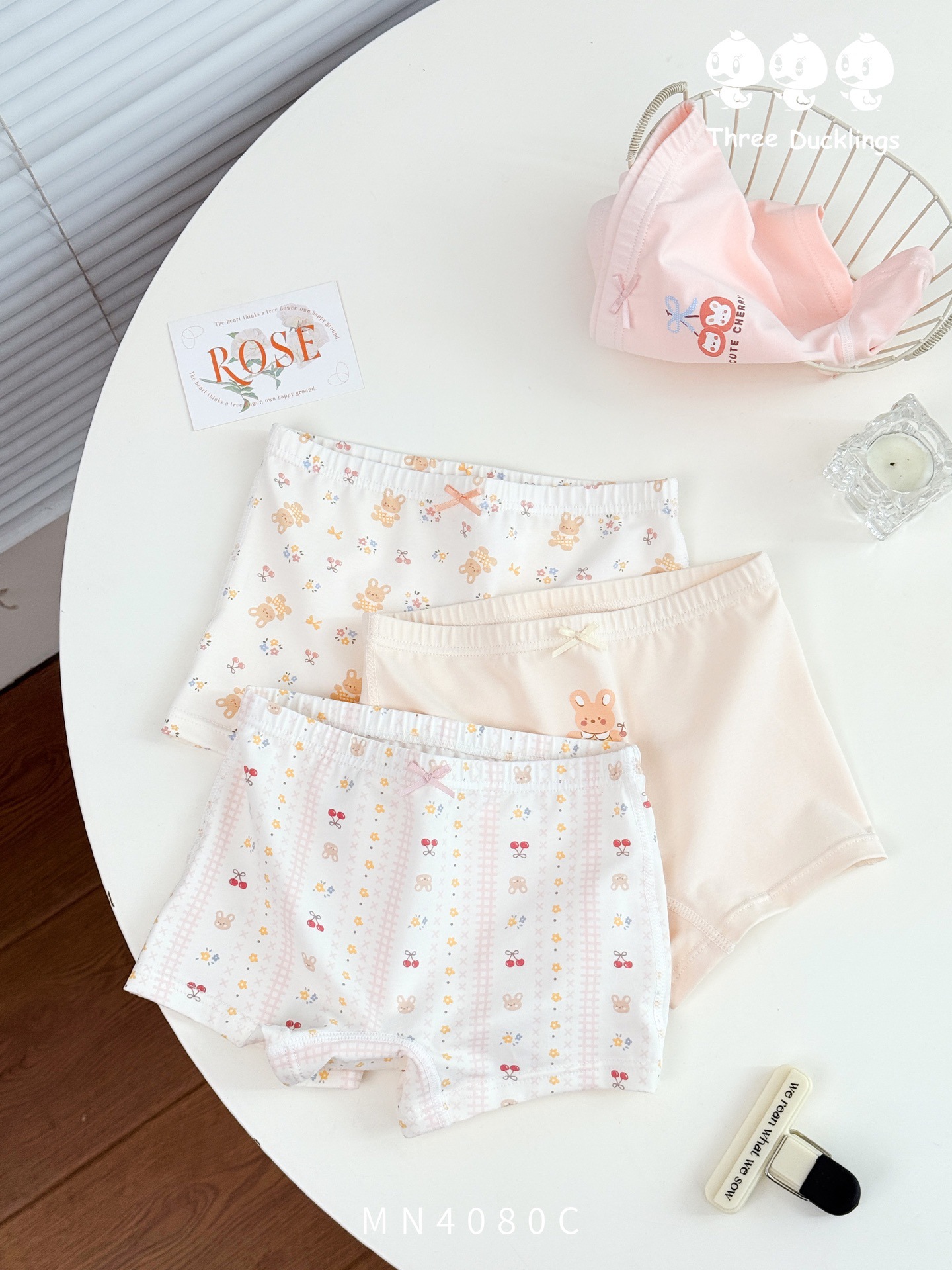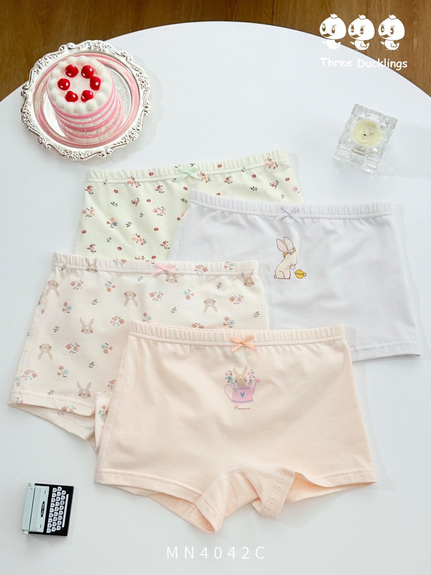 세 오리 새끼 새 어린이 속옷 편안한 피부 친화적 인 4 팩 소녀 95 코튼 복서 반바지 만화