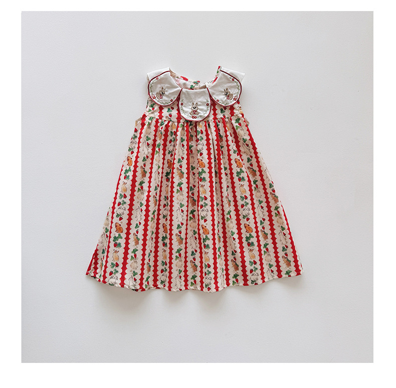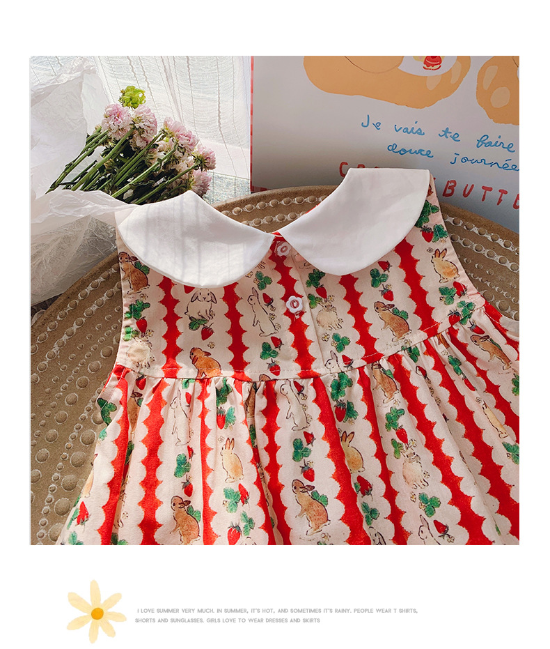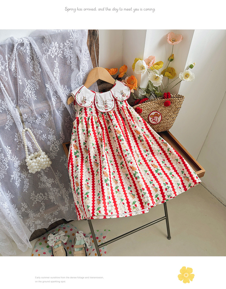 꽃 목걸이 토끼 수 놓은 소녀의 원피스 2025 여름 만화 인쇄 달콤한 귀여운 아기 민소매 스커트스토어 가기