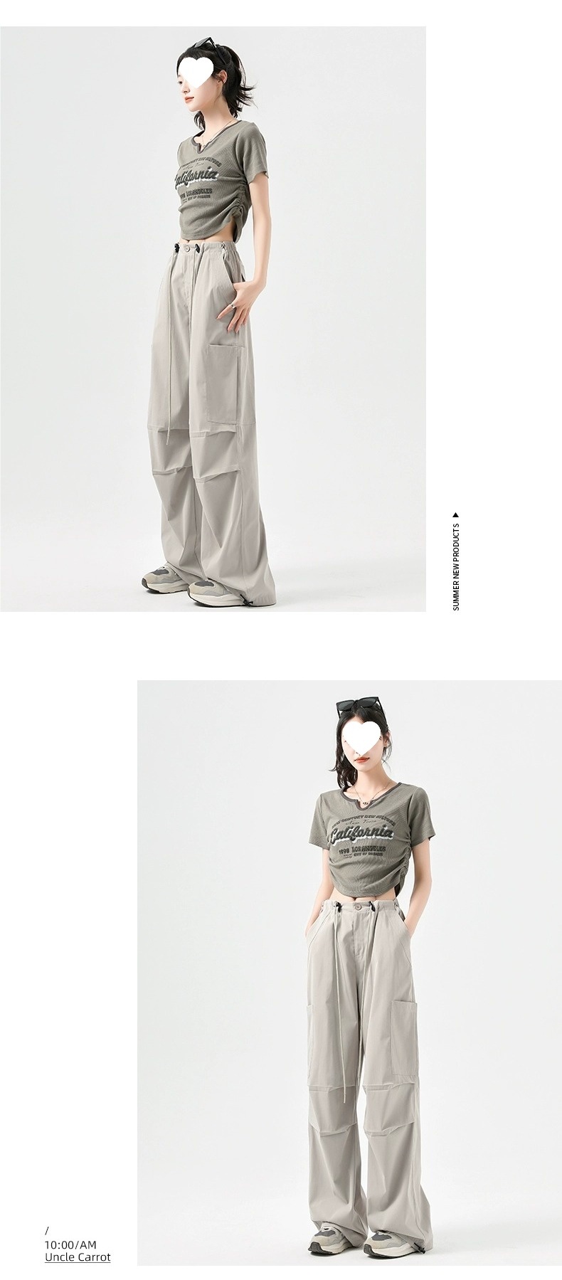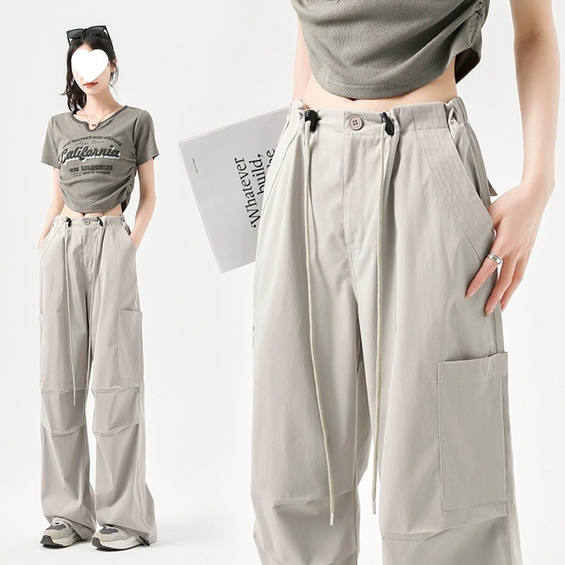미국 스타일의 빠른 건조 작업복 여성 여름 얇은 높은 허리 느슨한 스트레이트 작은 캐주얼 스포츠 아이스 대외 무역스토어 가기
