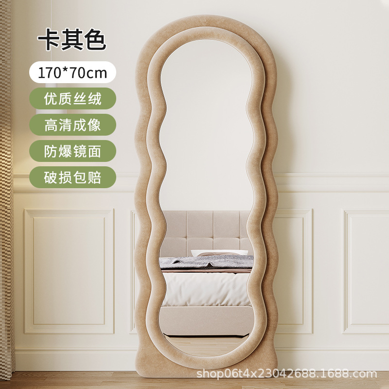 인터넷 연예인 전신 거울 홈 층 거울 소녀의 침실 빛 럭셔리 드레싱 거울 웨이브 인 스타일 모양의 피팅 거울스토어 가기