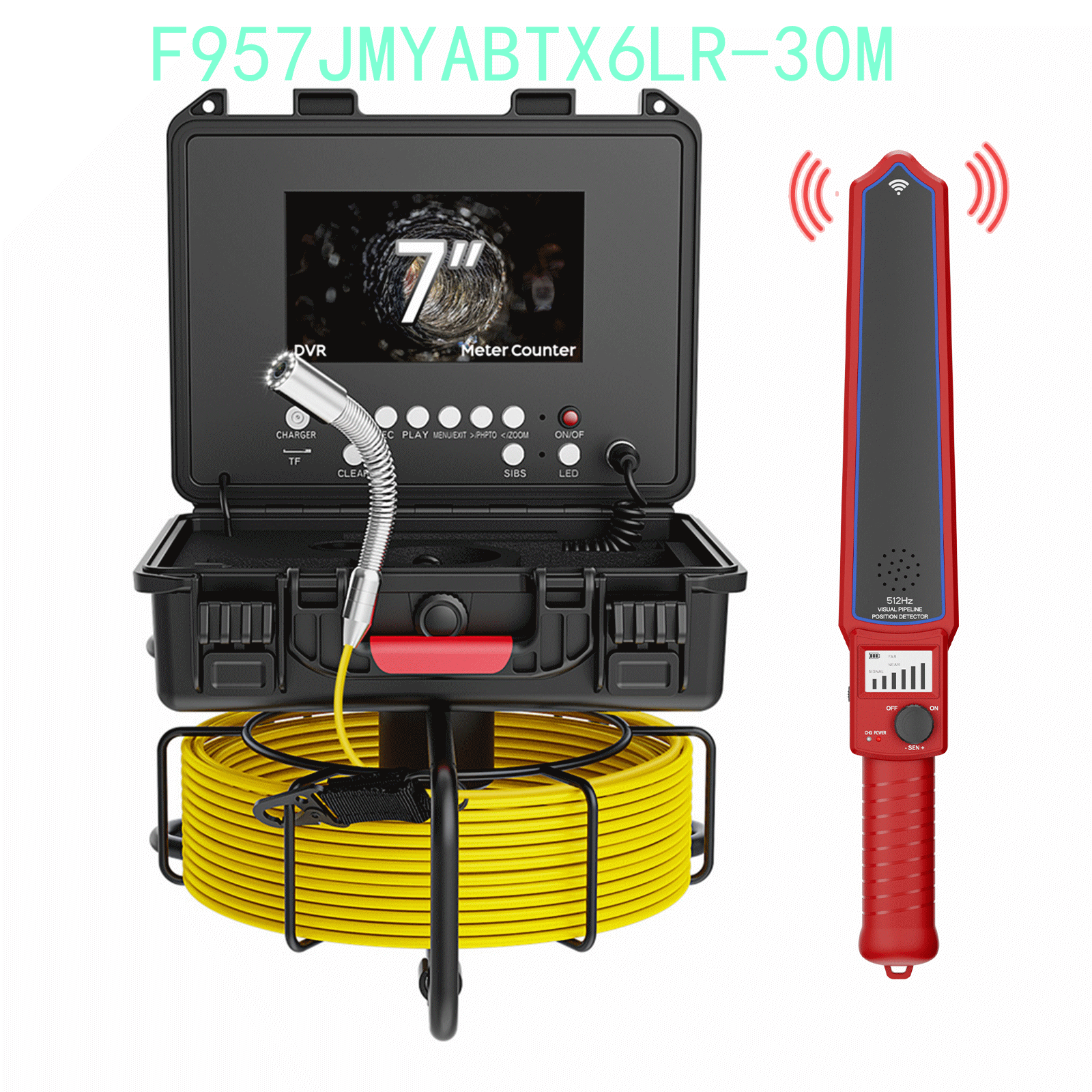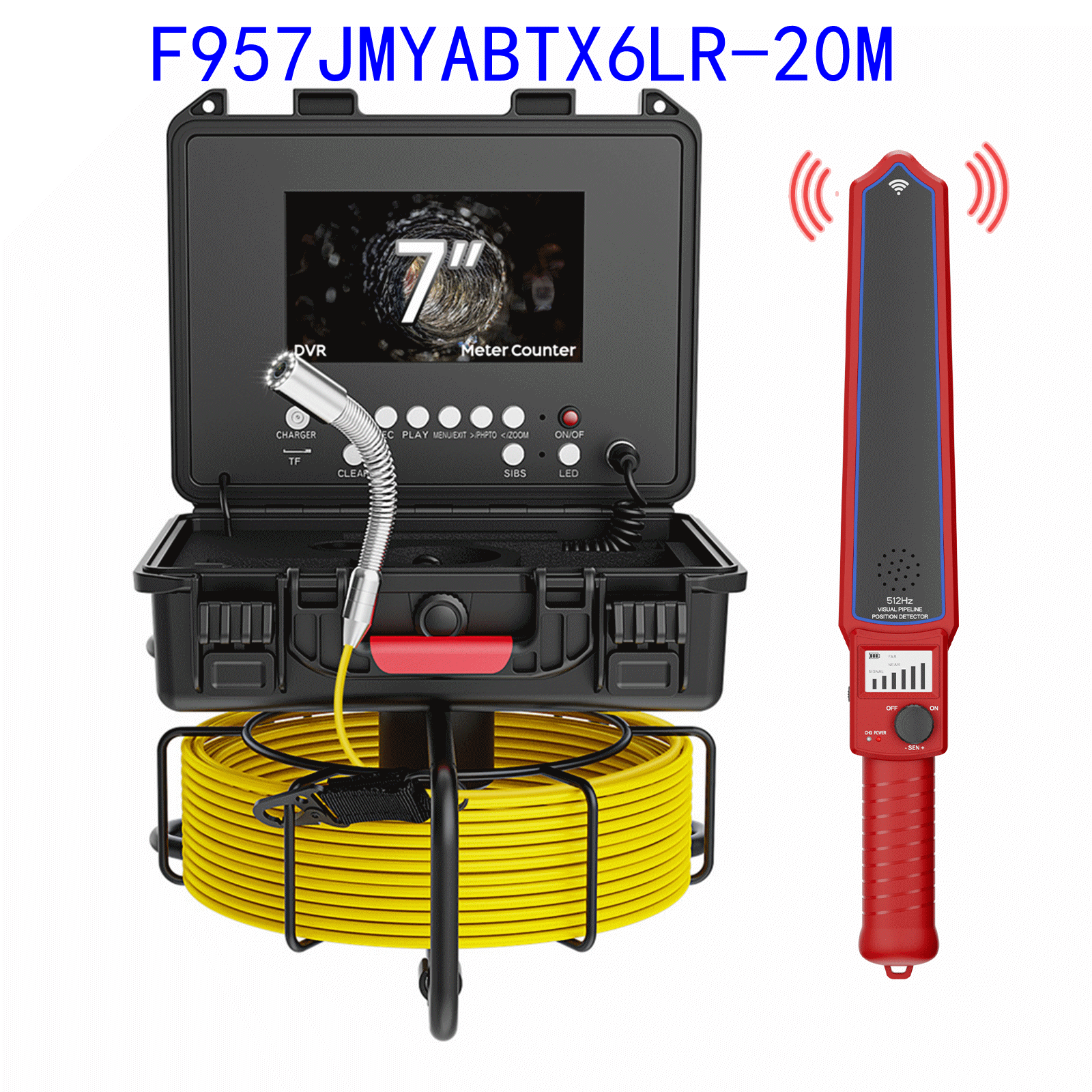 7寸AHD录像屏,带计米器,摄像机内置512HZ发射自平衡,蓝宝石镜片,直径23mm不锈钢探头,高清1080P,镜头角度145度,20-30-50米管道内窥镜,4500MA内置电池,带电量显示,12个白光灯,带摄像头保护套2种,送16G卡。5MM黄色线缆,配512HZ定位接收器。