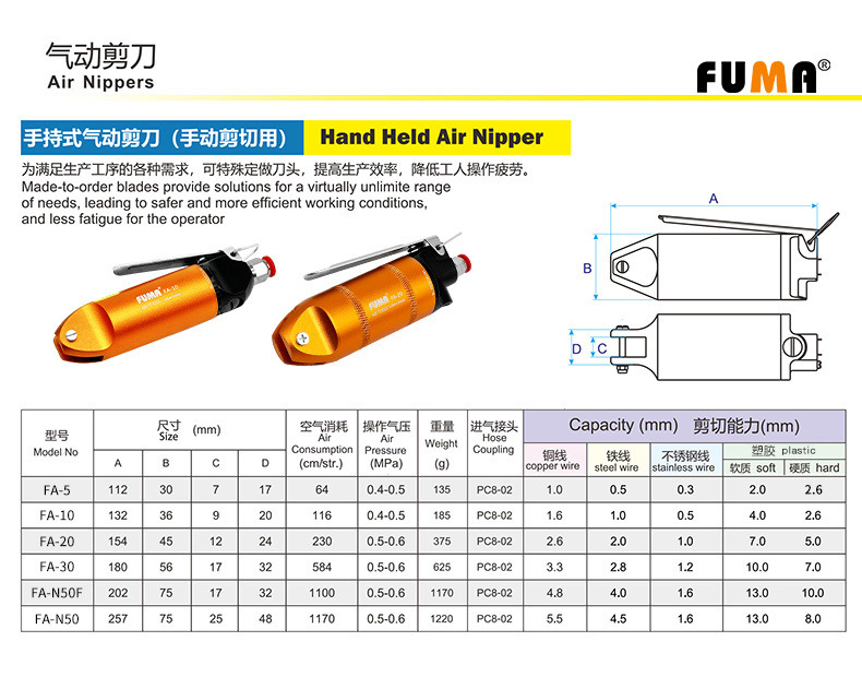 대만 FUMA 공압 가위, 산업용 등급 플라스틱 노즐 가위, 구리 및 철 부품 발 공압 가위 헤드