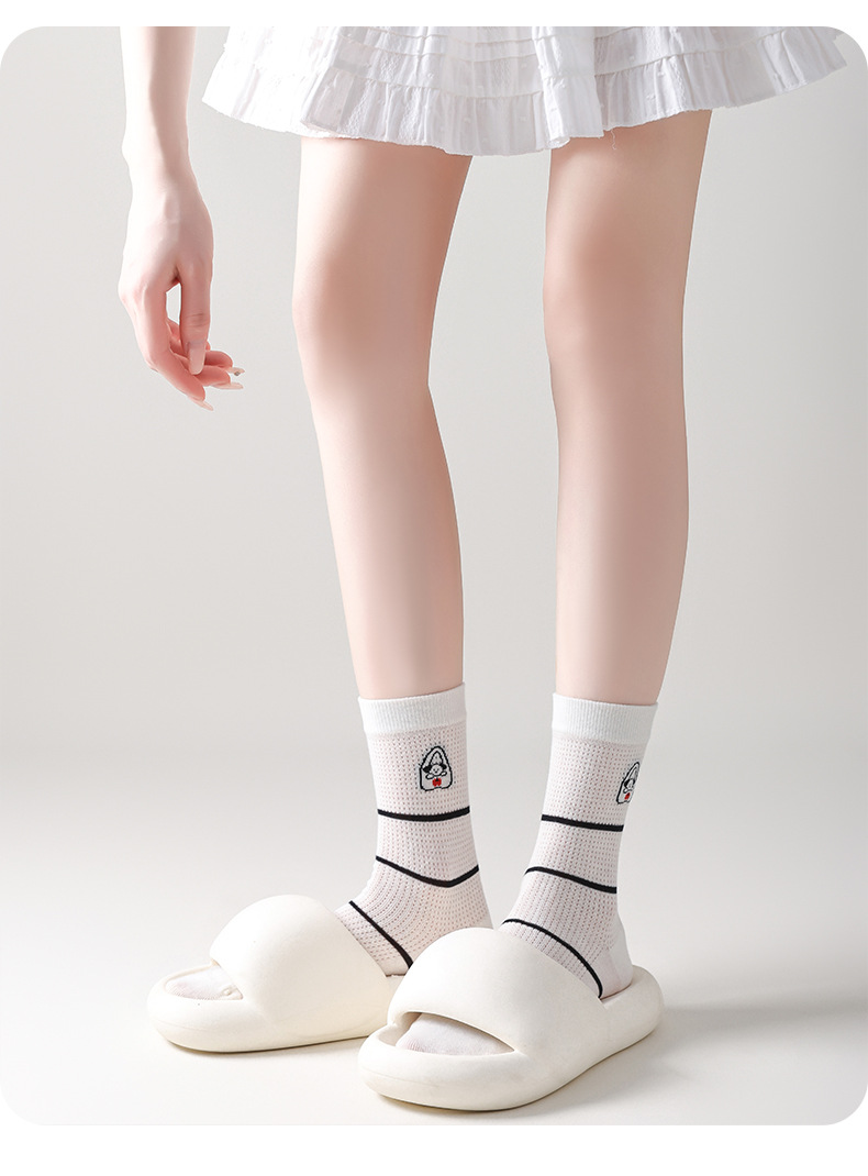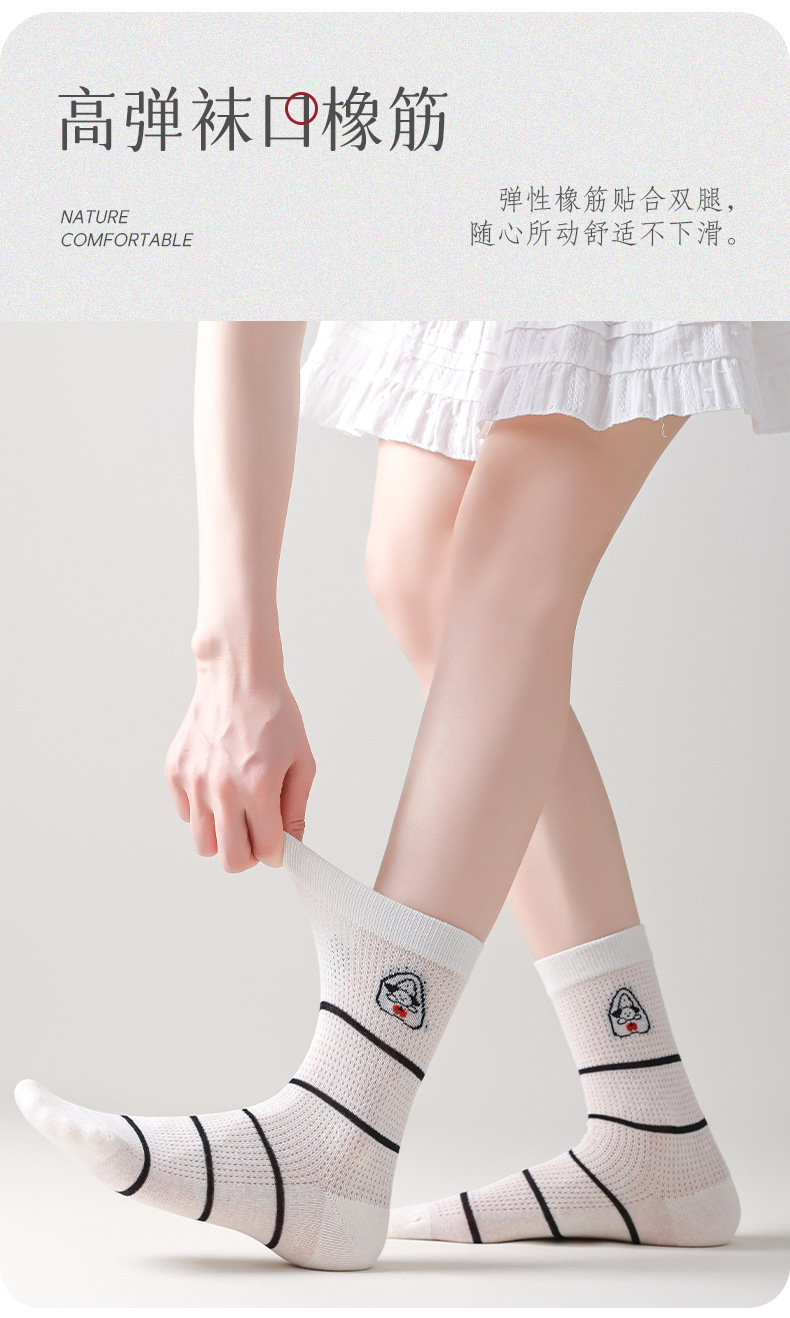만화 양말 여성용 종아리 중간 양말 트렌디 한 초가을 일본식 귀여운 대학 스타일 활 강아지 줄무늬 스타킹
