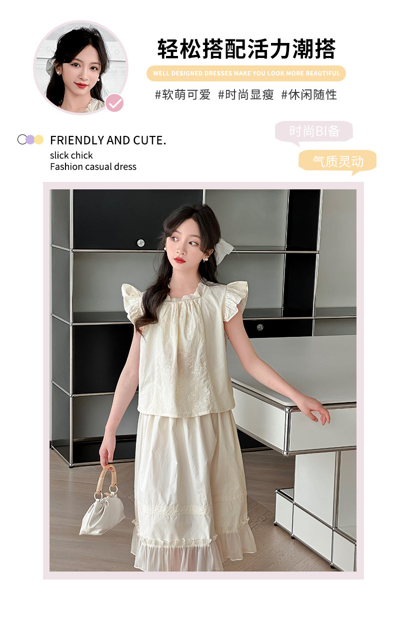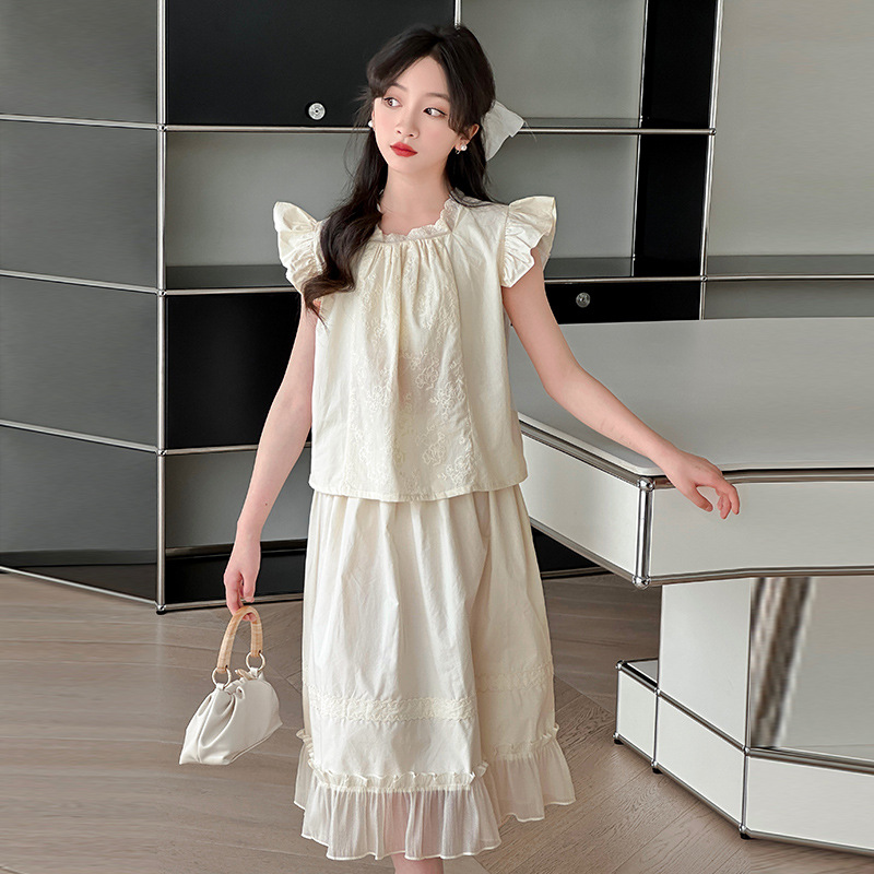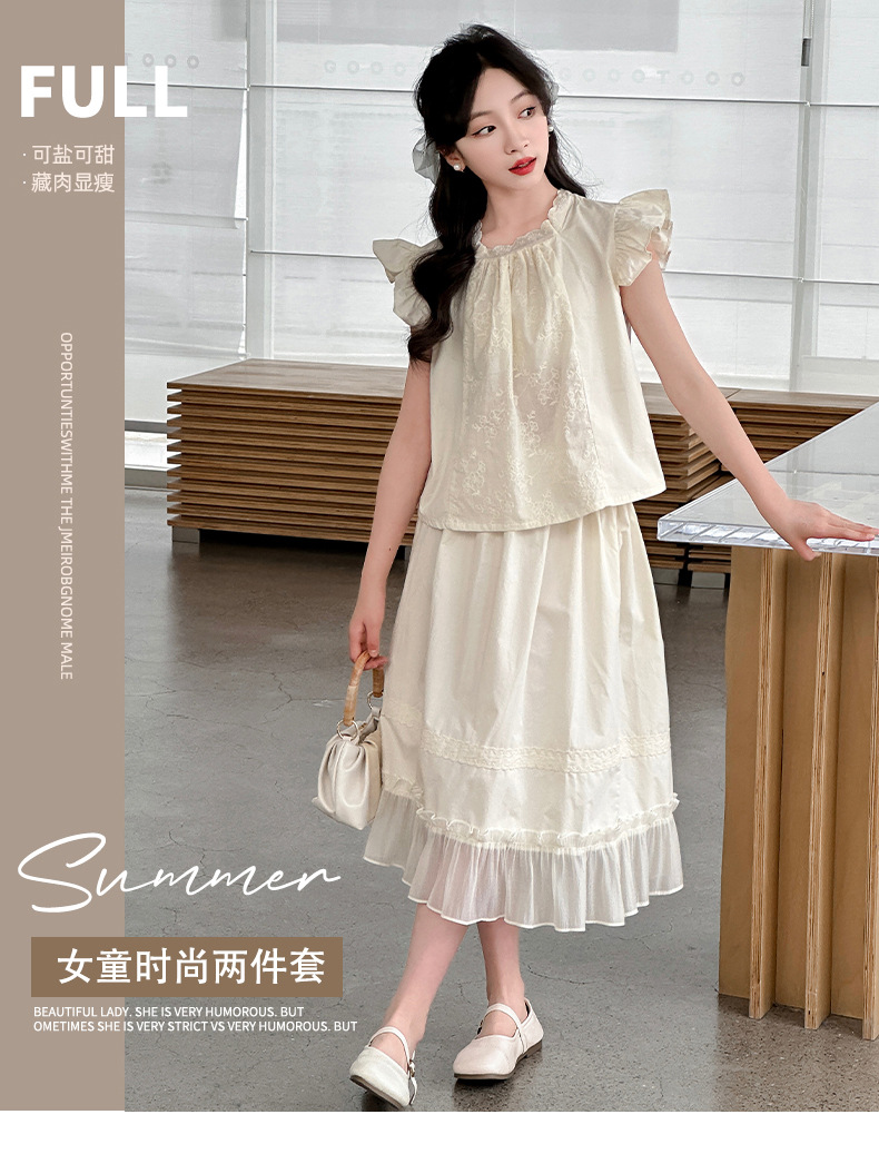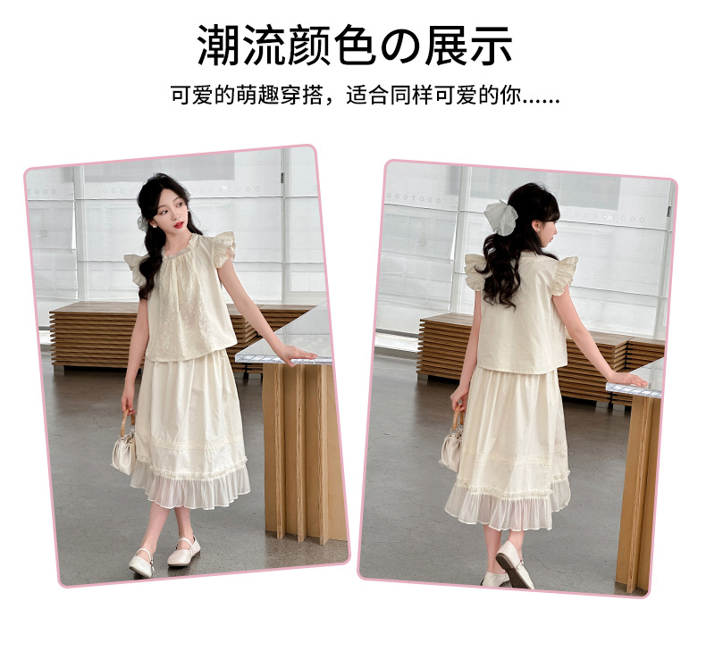 여자 여름 원피스 세트 2025 새로운 스타일 어린이 여름 얇은 치마 소녀 패션 캐주얼 투피스 세트
