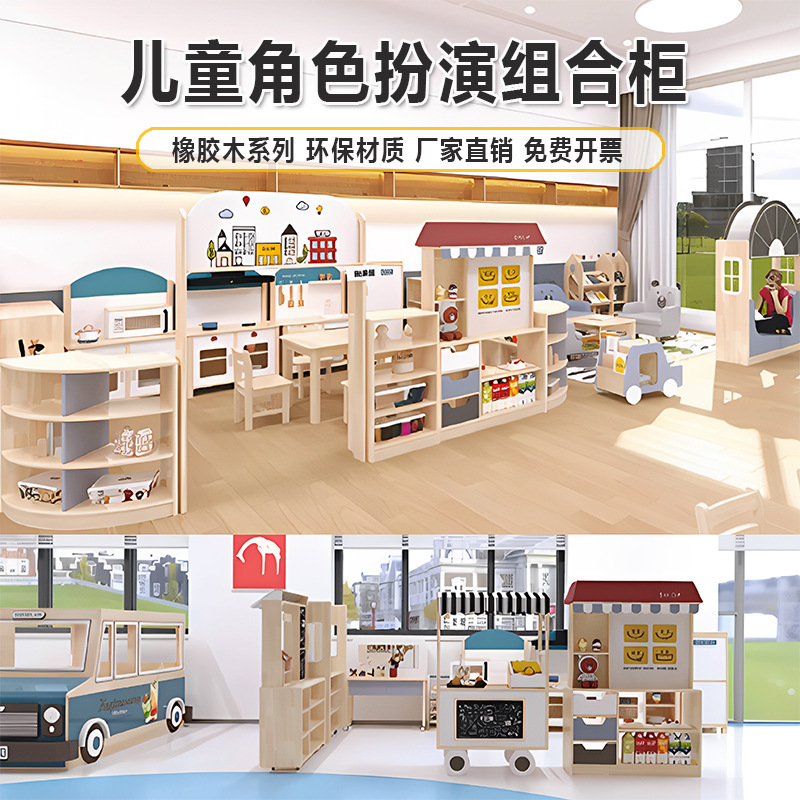 어린이 롤 플레잉 인형 집 장난감 테마 캐비닛 유치원 시뮬레이션 판매 캐비닛 시뮬레이션 게임 스타일 나무 집