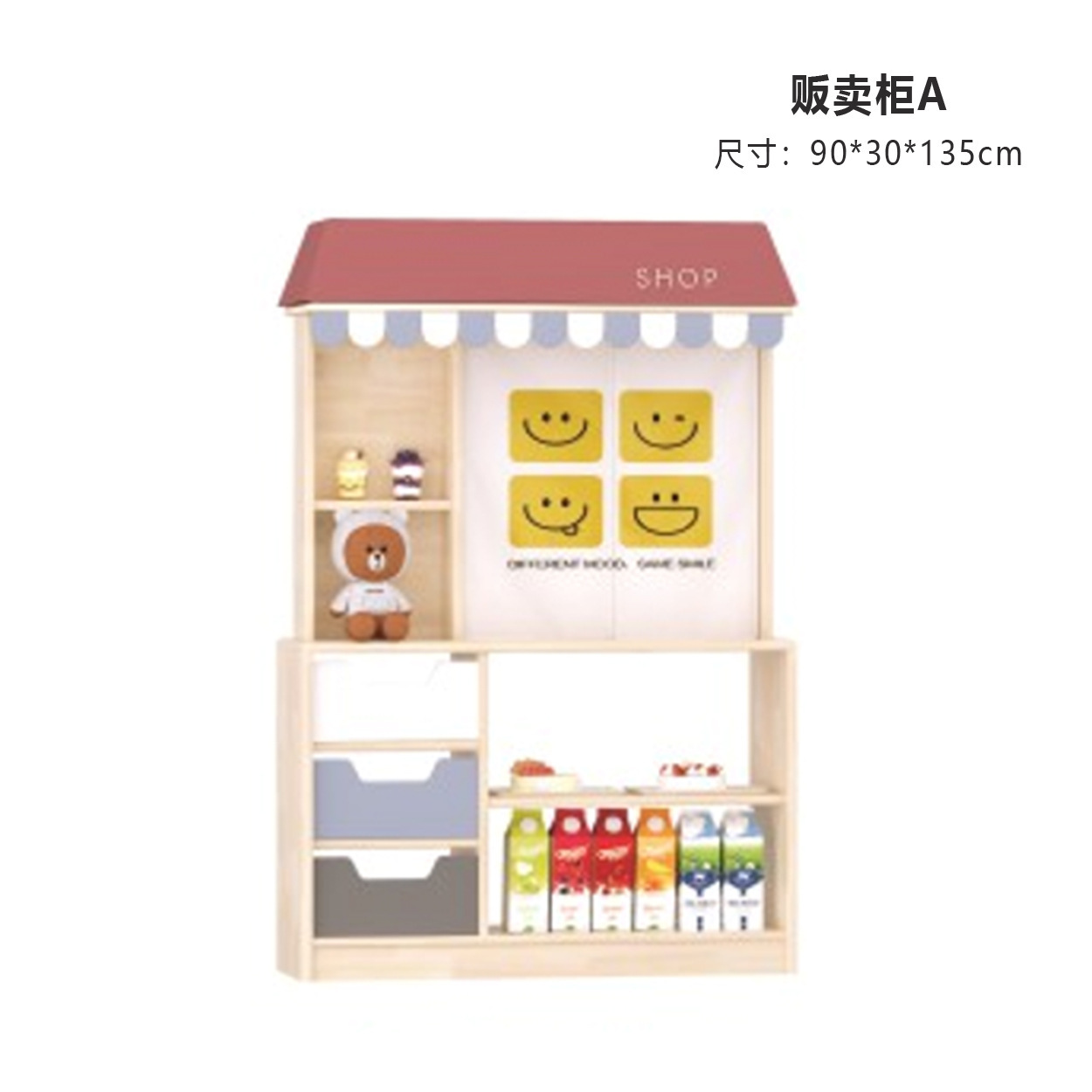 어린이 롤 플레잉 인형 집 장난감 테마 캐비닛 유치원 시뮬레이션 판매 캐비닛 시뮬레이션 게임 스타일 나무 집스토어 가기