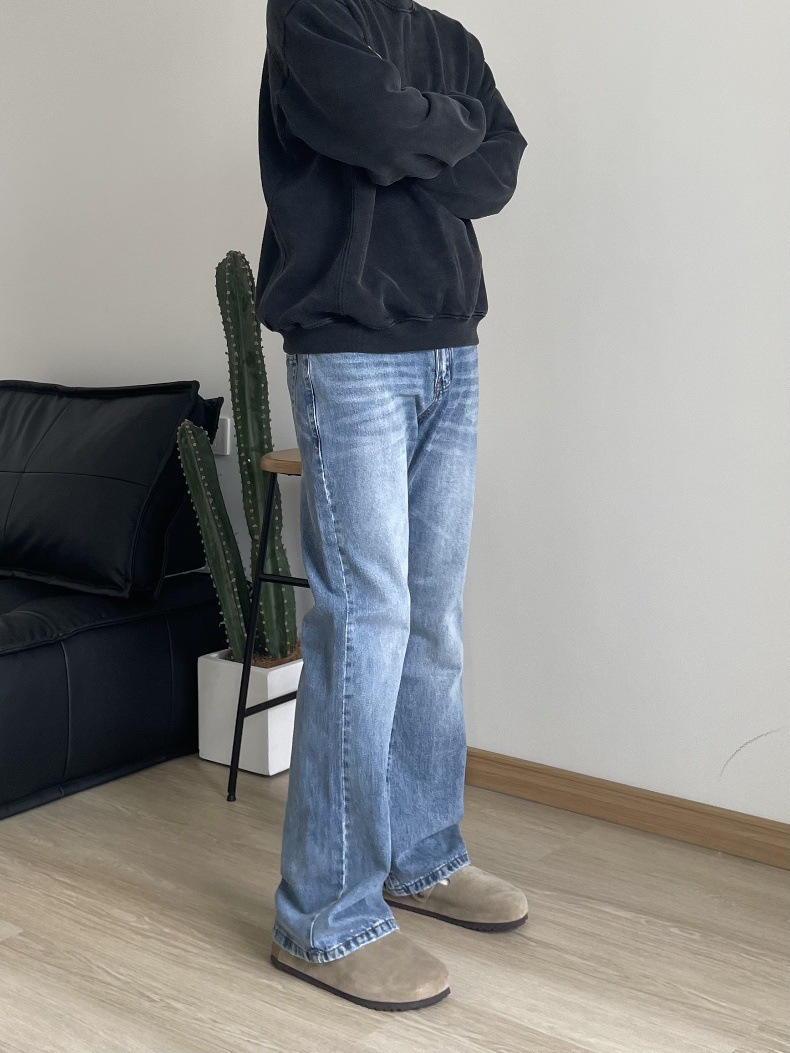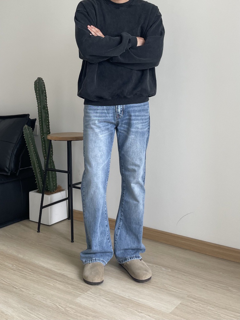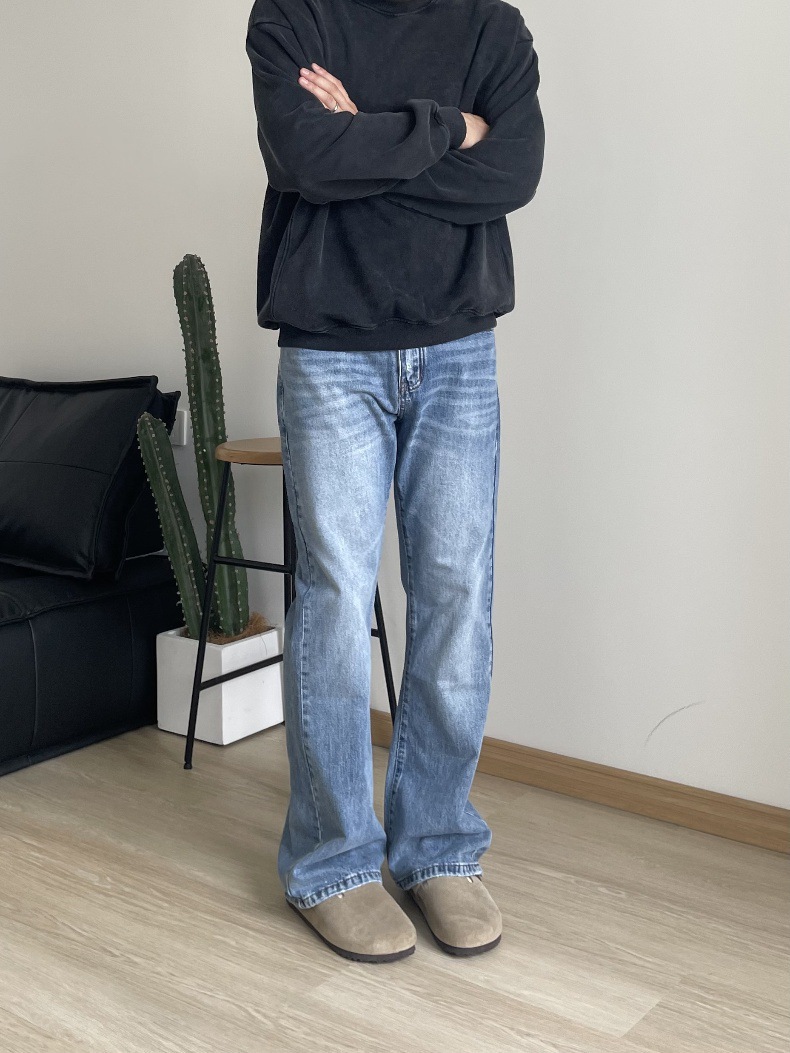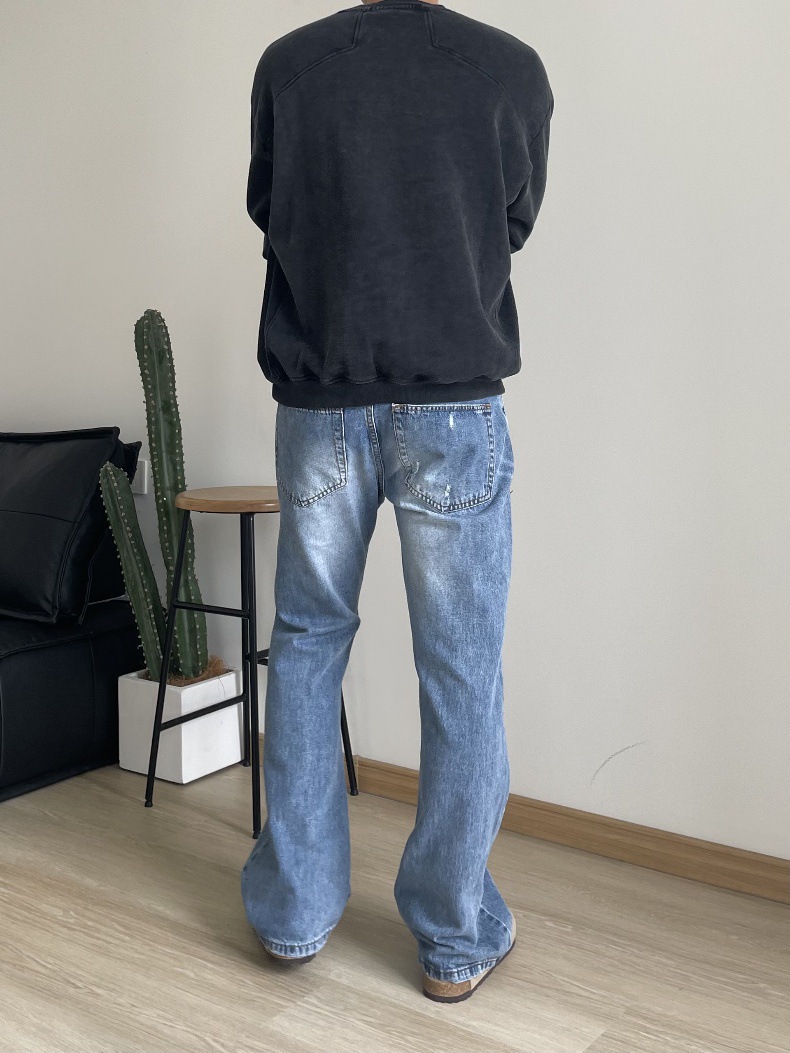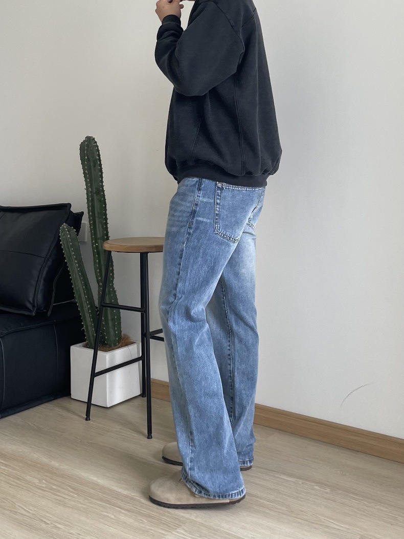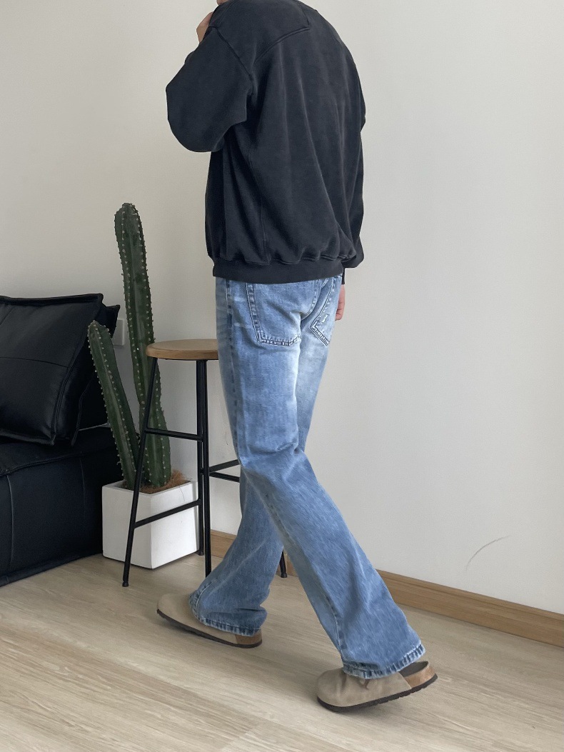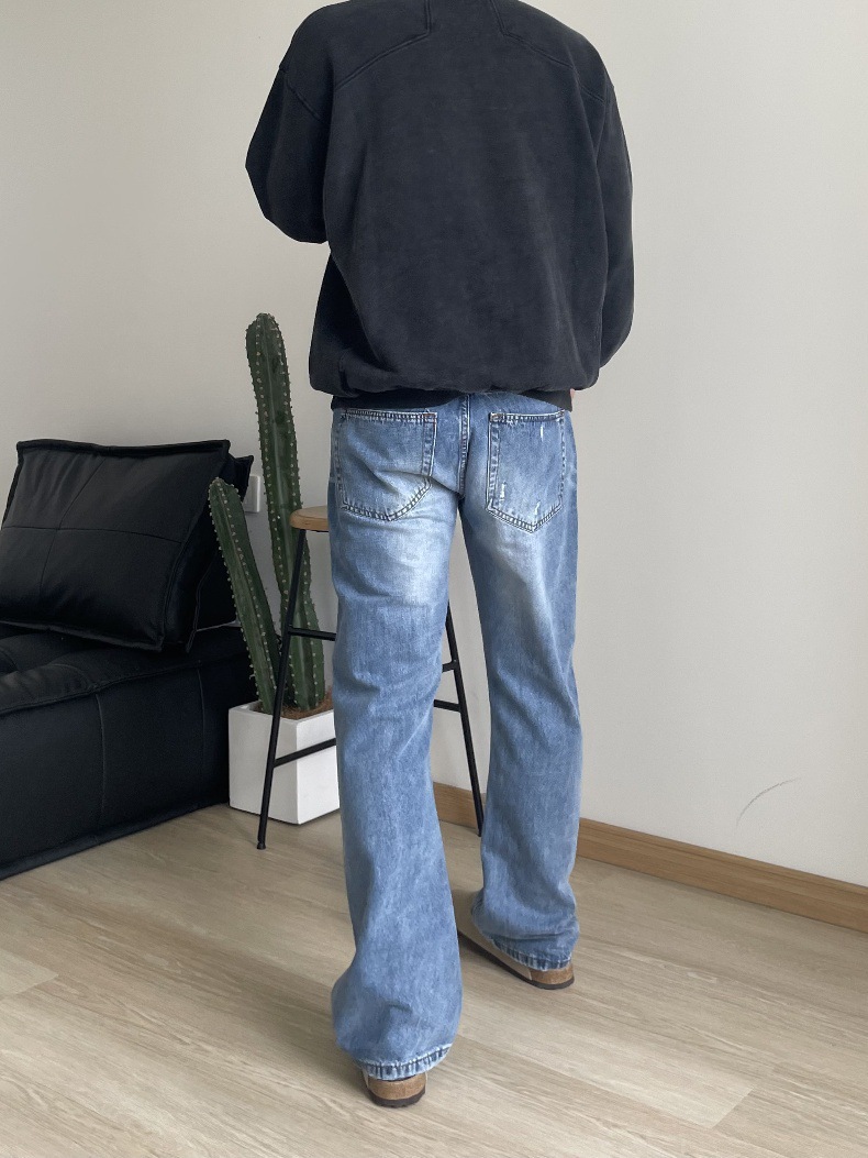 2024 아메리칸 레트로 라이트 블루 워싱 올드 스타일 남성용 부츠컷 청바지스토어 가기