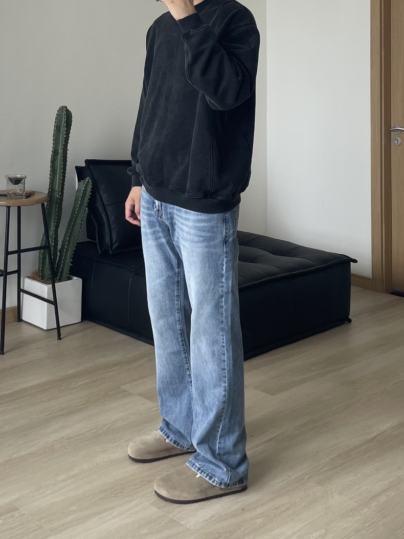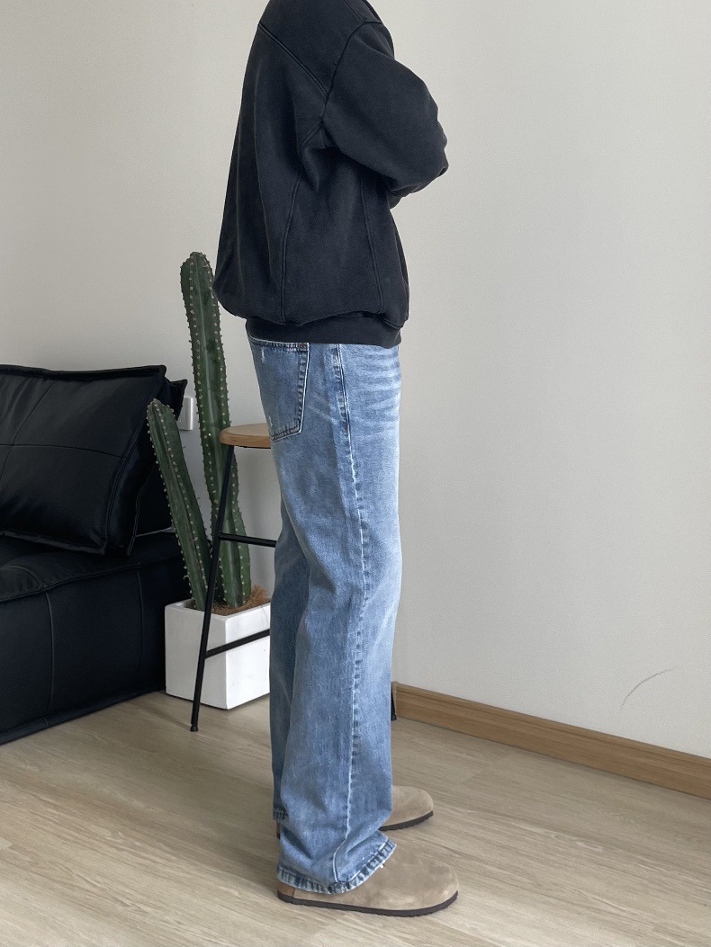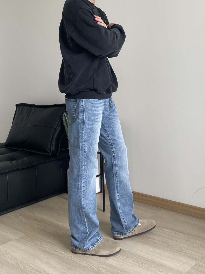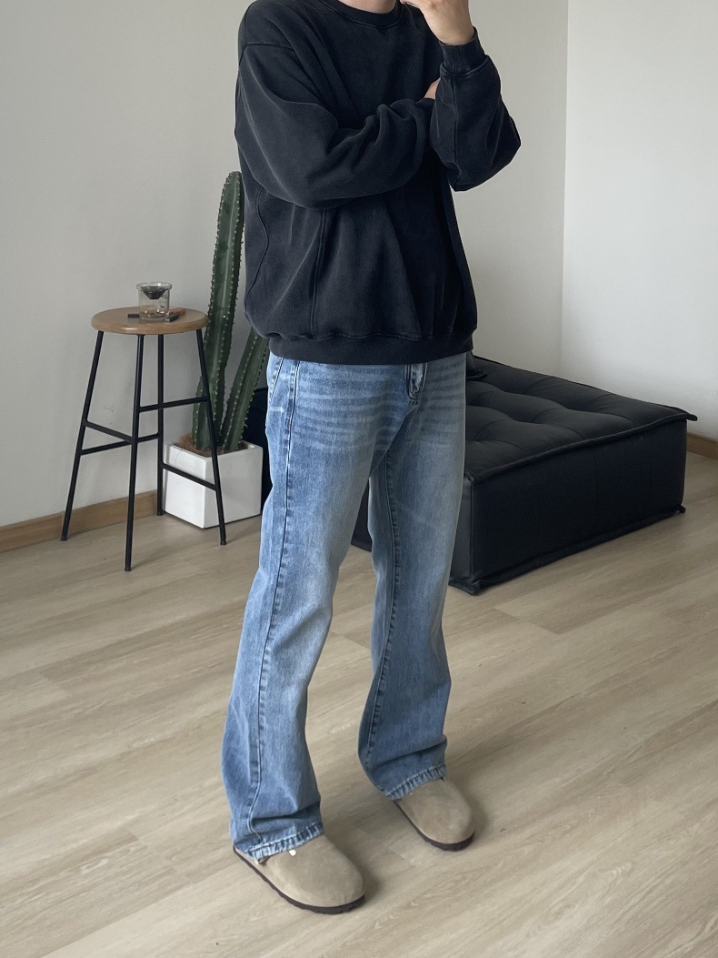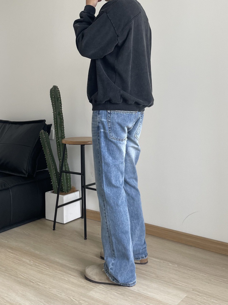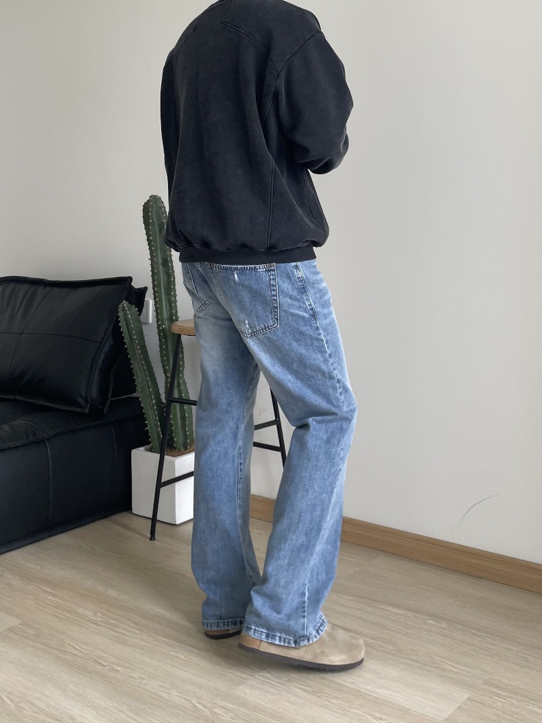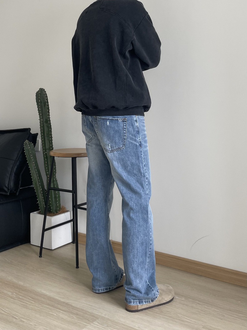 2024 아메리칸 레트로 라이트 블루 워싱 올드 스타일 남성용 부츠컷 청바지스토어 가기