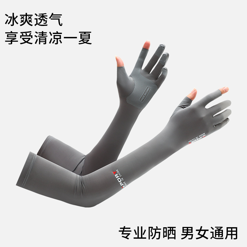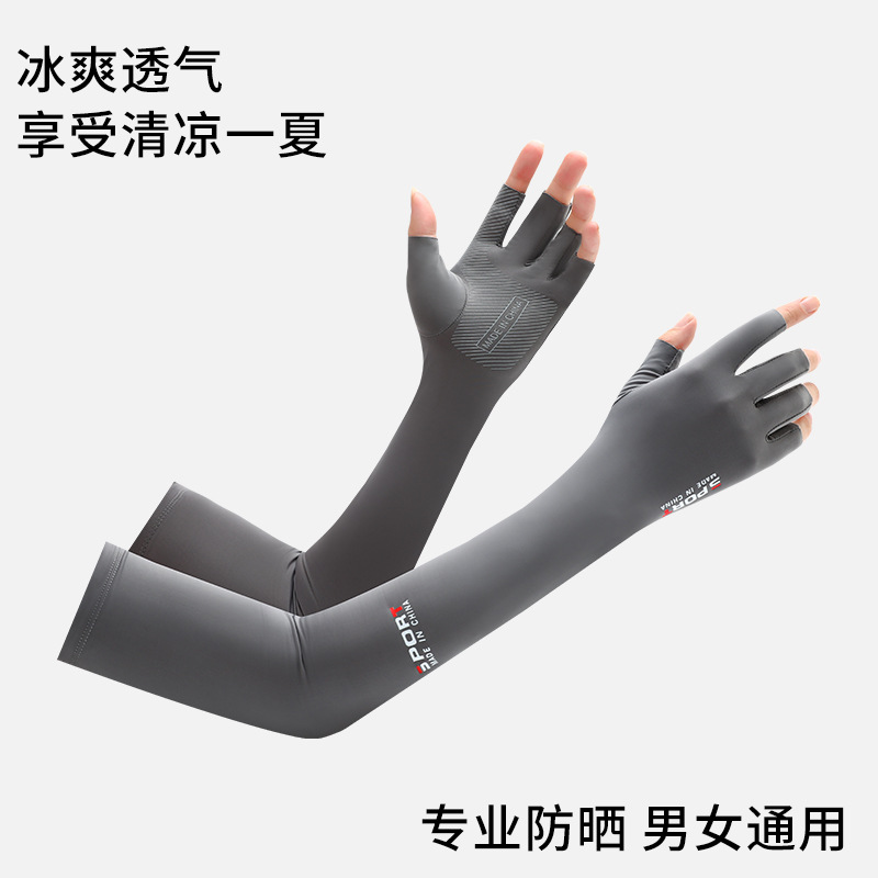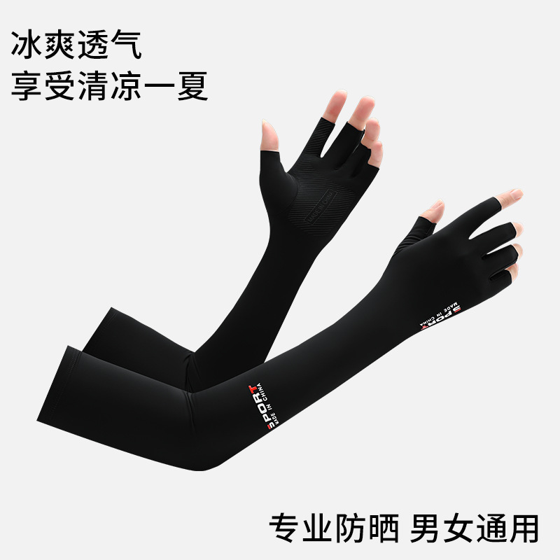 봄 여름 남성용 및 여성용 아이스 슬리브 두 손가락 장갑, 자외선 차단 사이클링 아이스 실크 슬리브, 남성용 미끄럼 방지 롱 아이스 슬리브스토어 가기