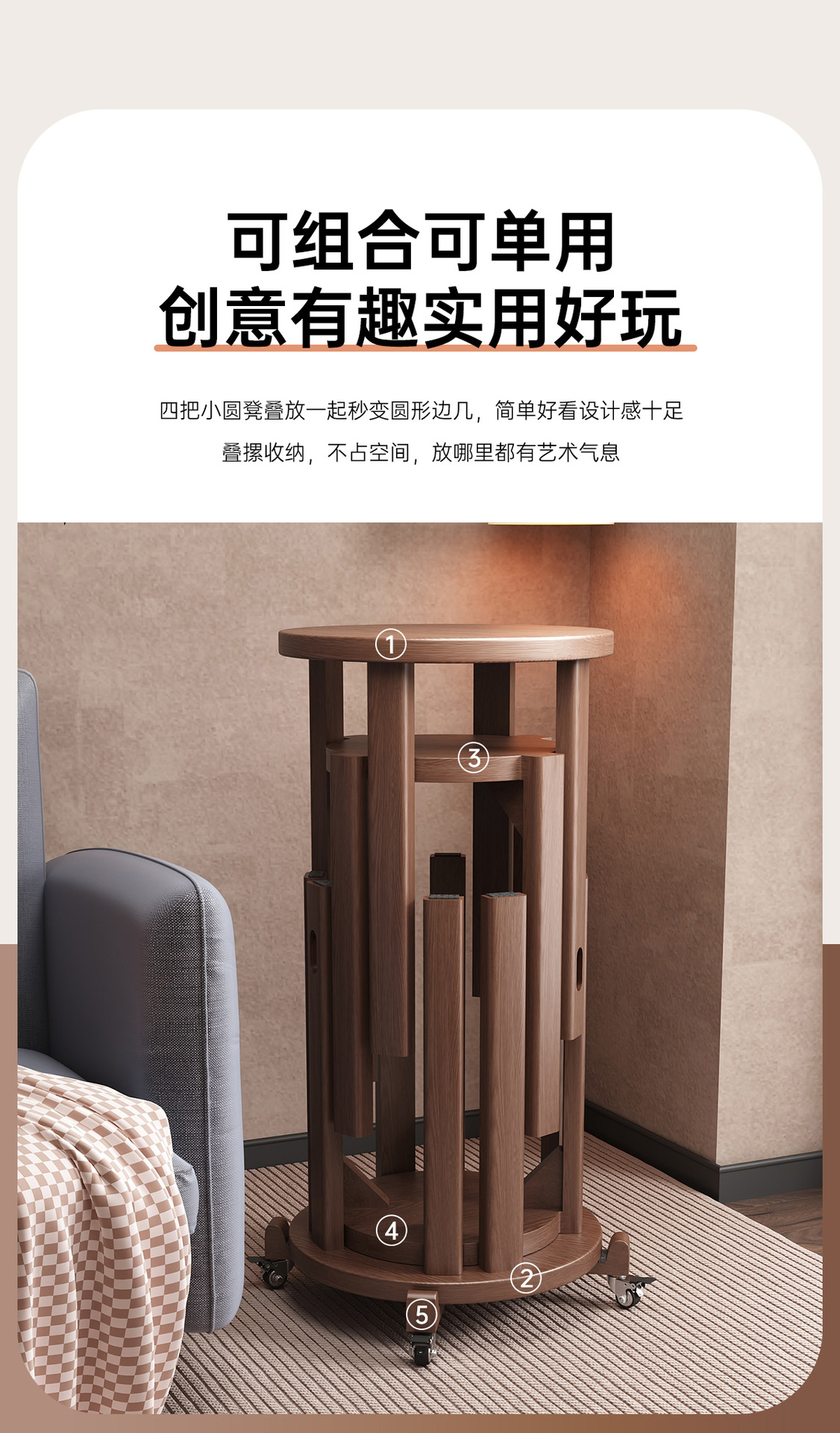 Sanmeng 단단한 나무 의자 가정용 쌓을 수있는 조합 둥근 의자 거실 예비 식탁 의자 Jenga 접이식 의자 s^스토어 가기