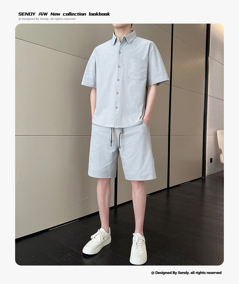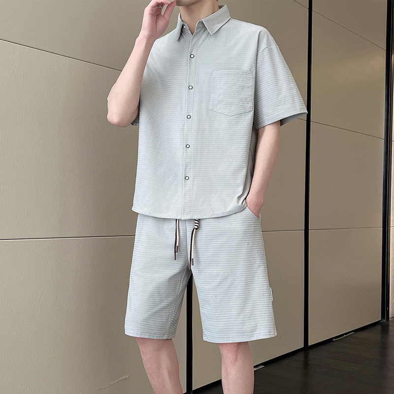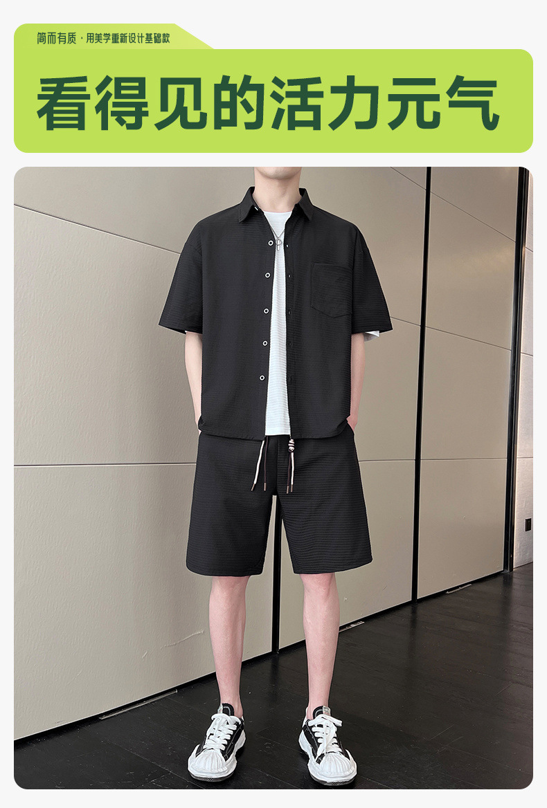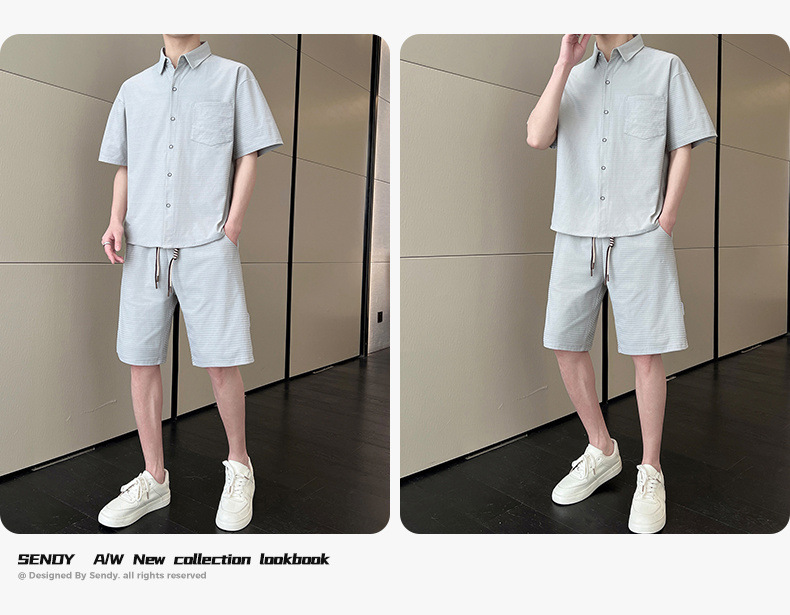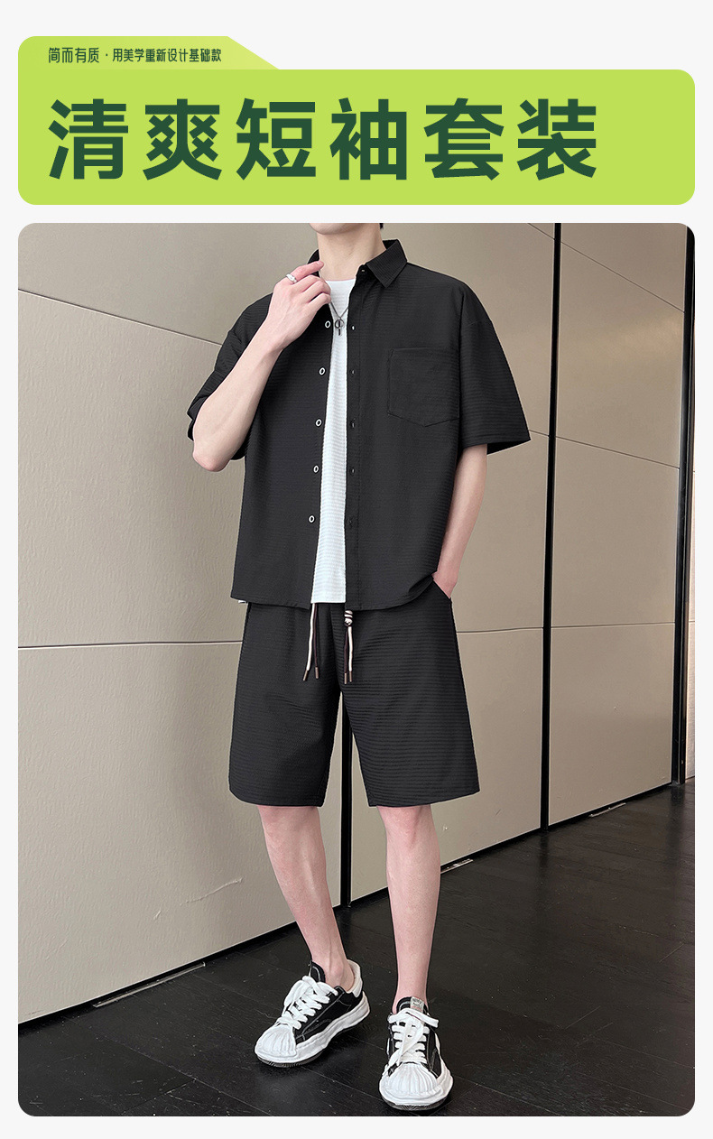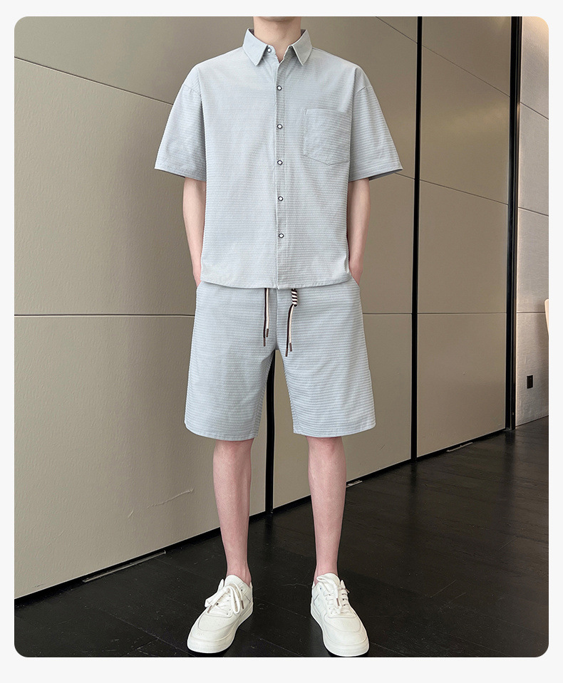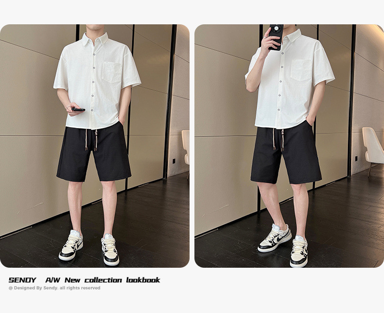 남성용 셔츠 세트 여름 아이스 스타일 트렌디 브랜드 남성용 주름 방지 반소매 의류 캐주얼 스포츠 세트 셔츠스토어 가기