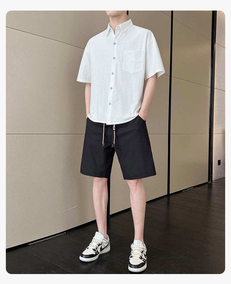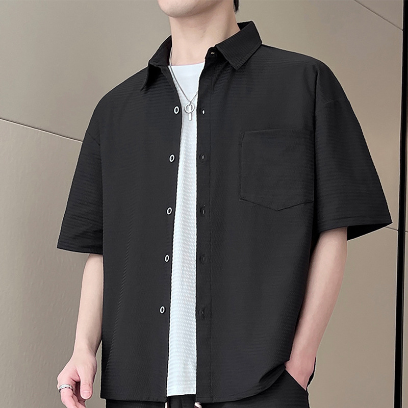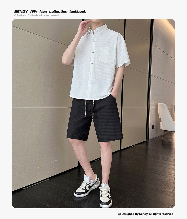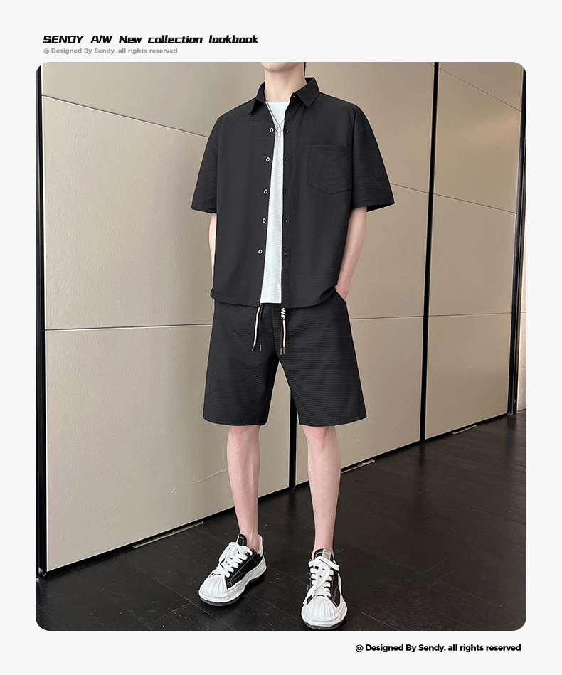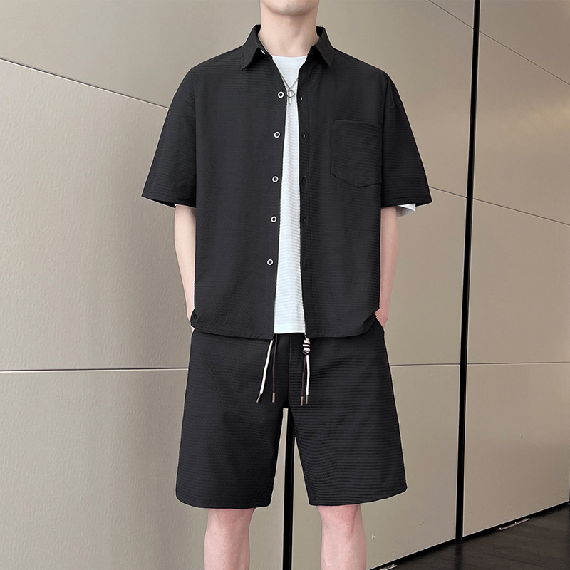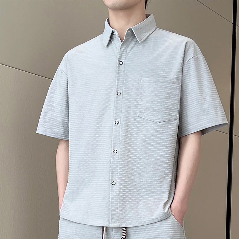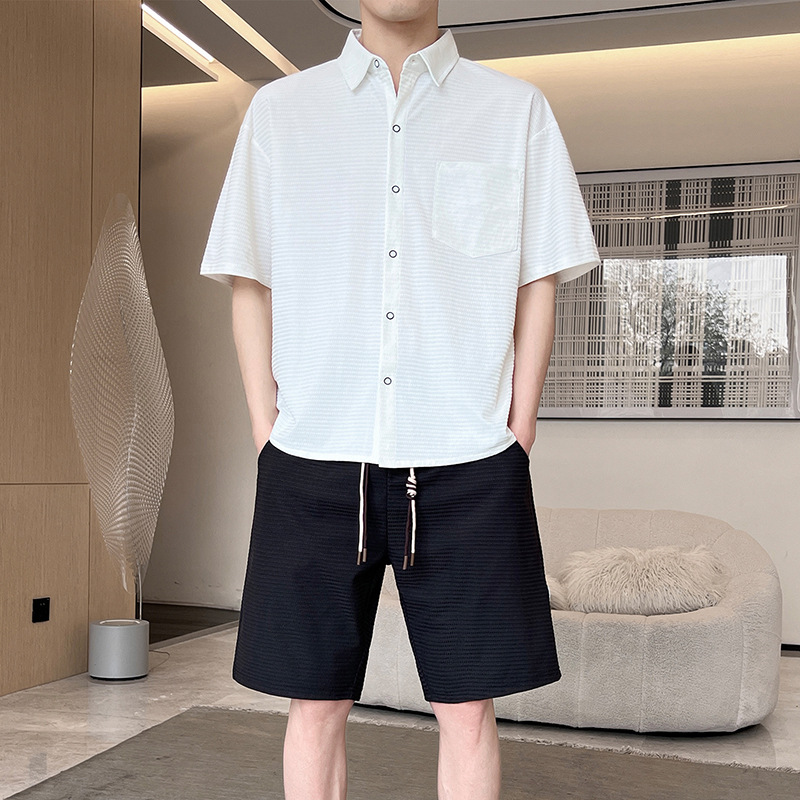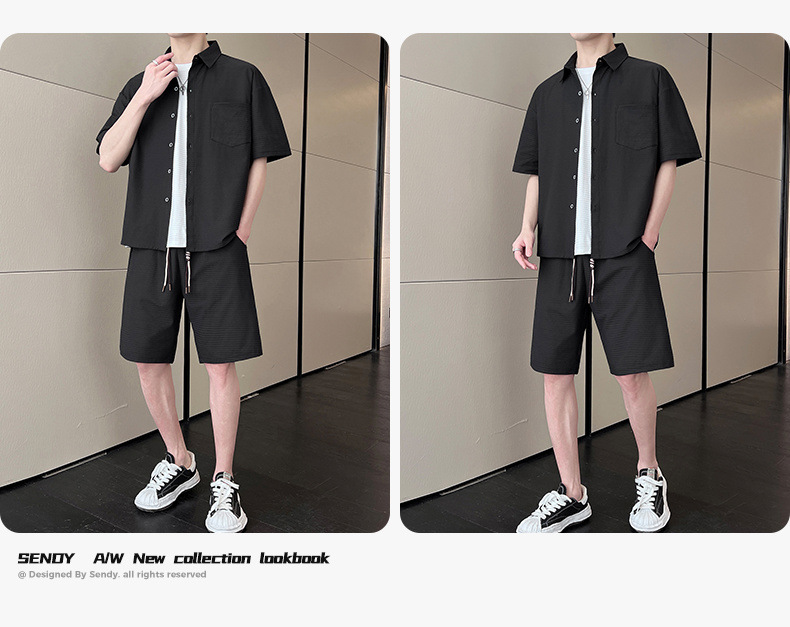남성용 셔츠 세트 여름 아이스 스타일 트렌디 브랜드 남성용 주름 방지 반소매 의류 캐주얼 스포츠 세트 셔츠스토어 가기
