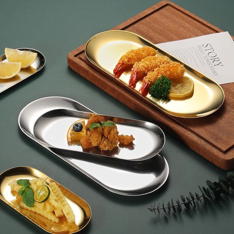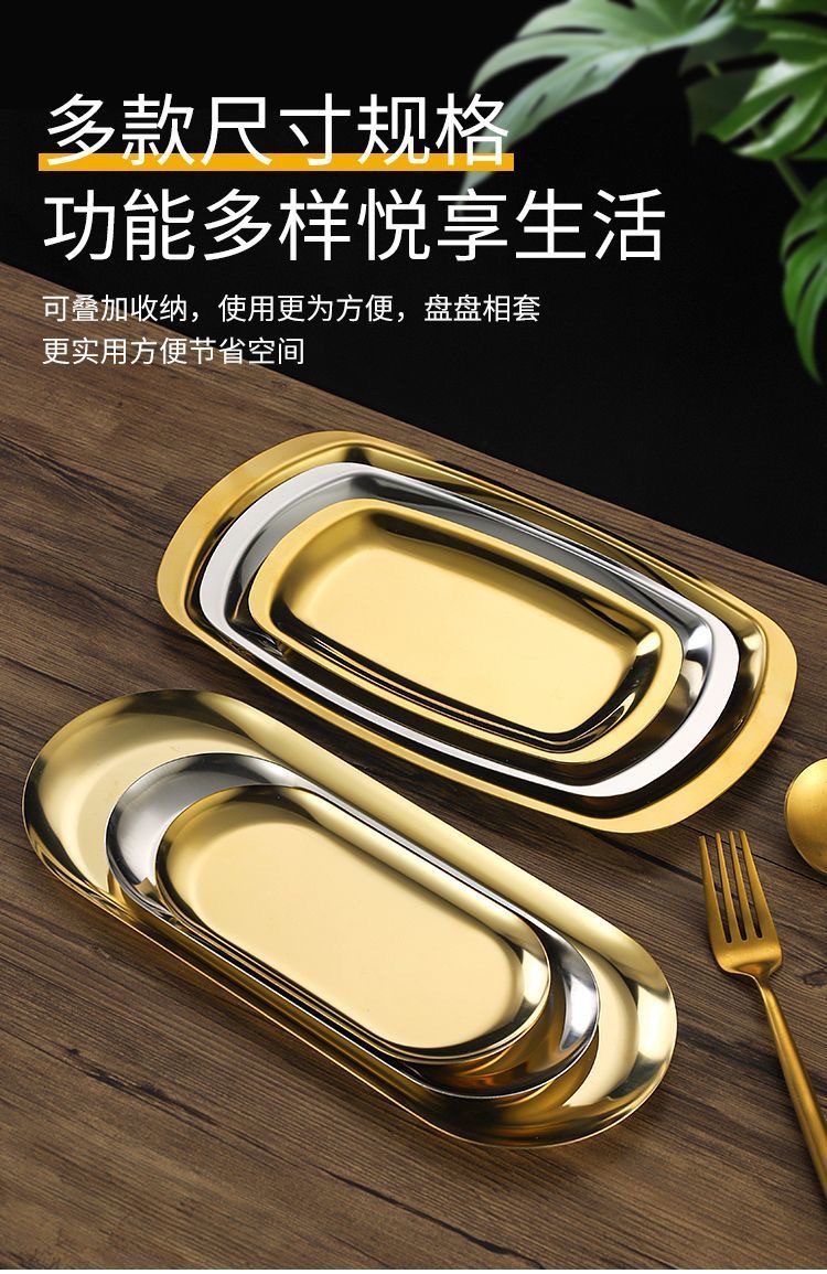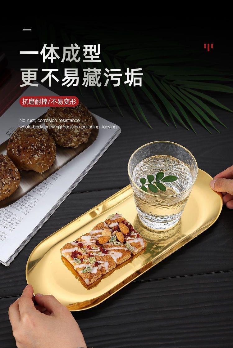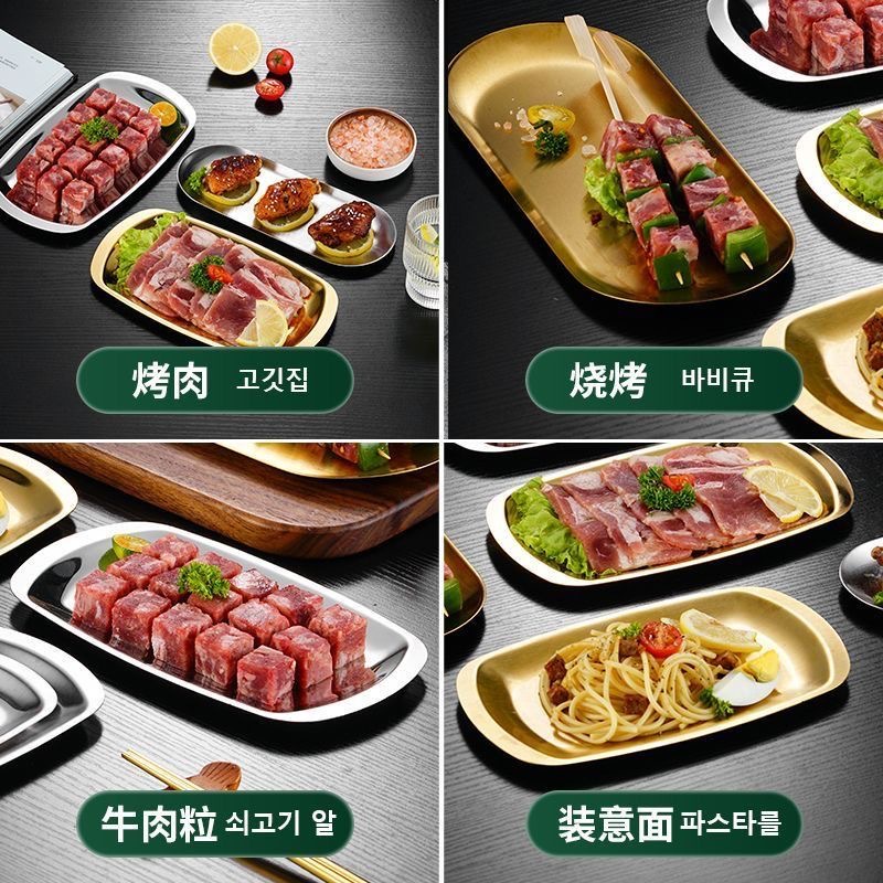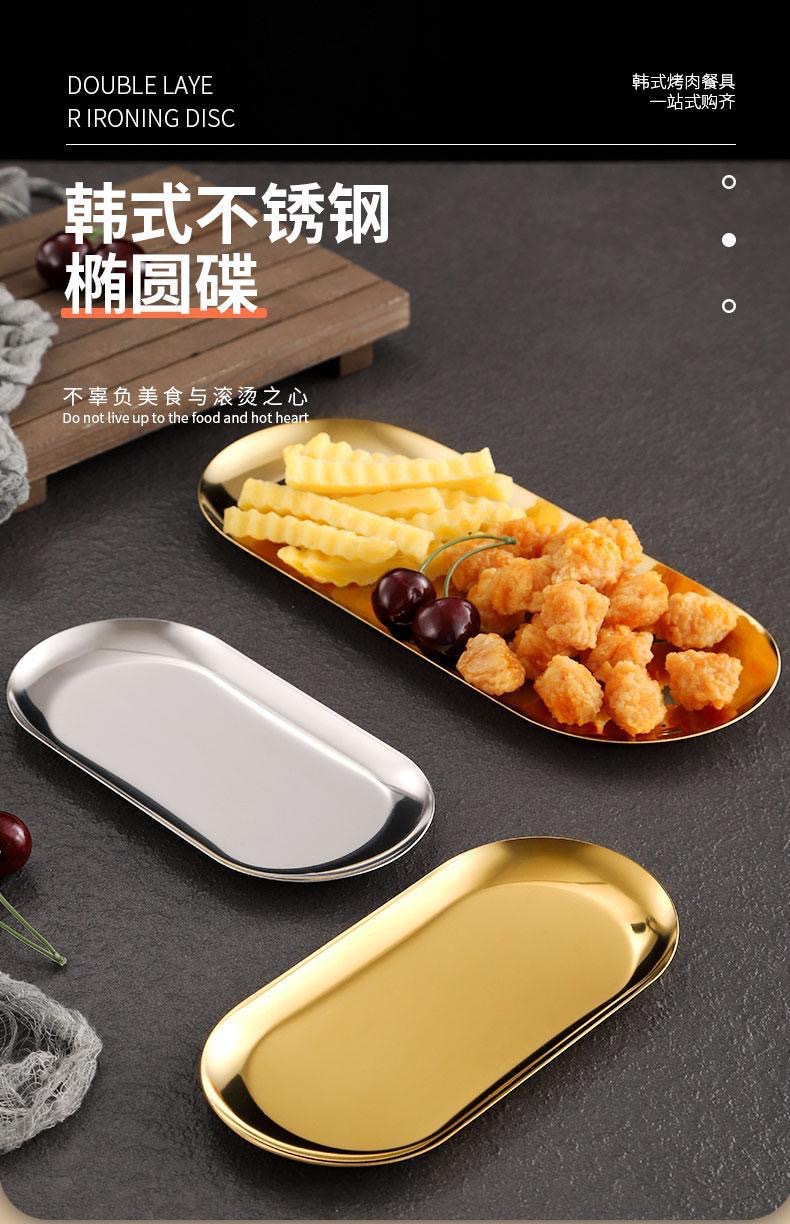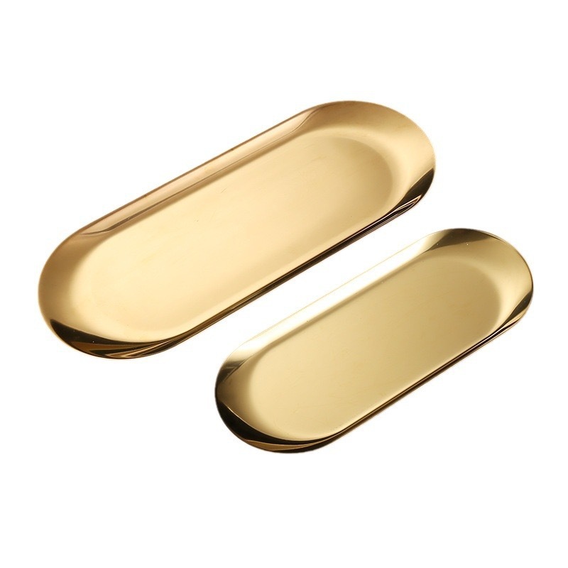 한국 스테인레스 스틸 골드 트레이 디저트 서빙 트레이 라이트 럭셔리 타원형 홈 스토리지 쥬얼리 스토리지 플랫 트레이스토어 가기