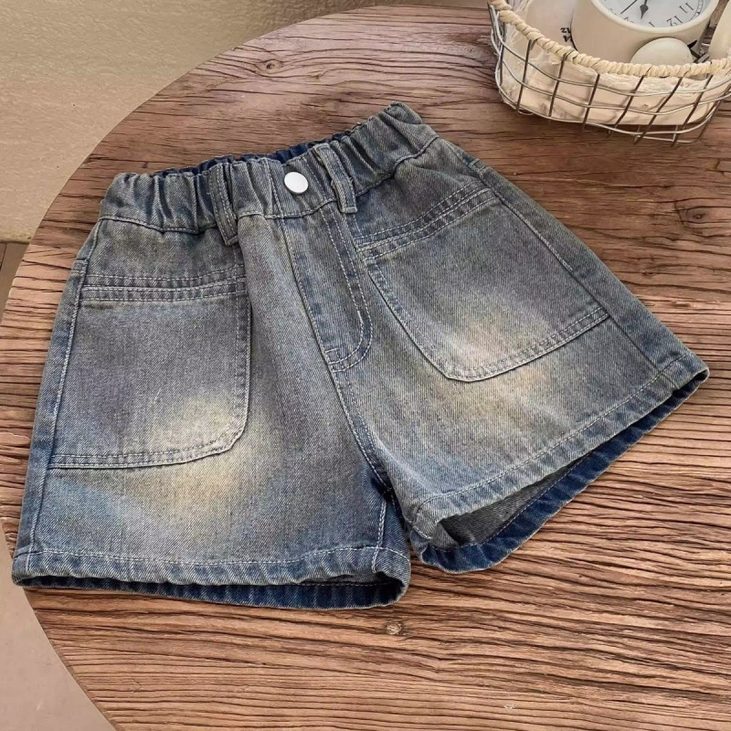 여자 데님 반바지 2025 여름 새 어린이 한국 캐주얼 얇은 핫 바지 아기의 올 매치 크레인 바지스토어 가기