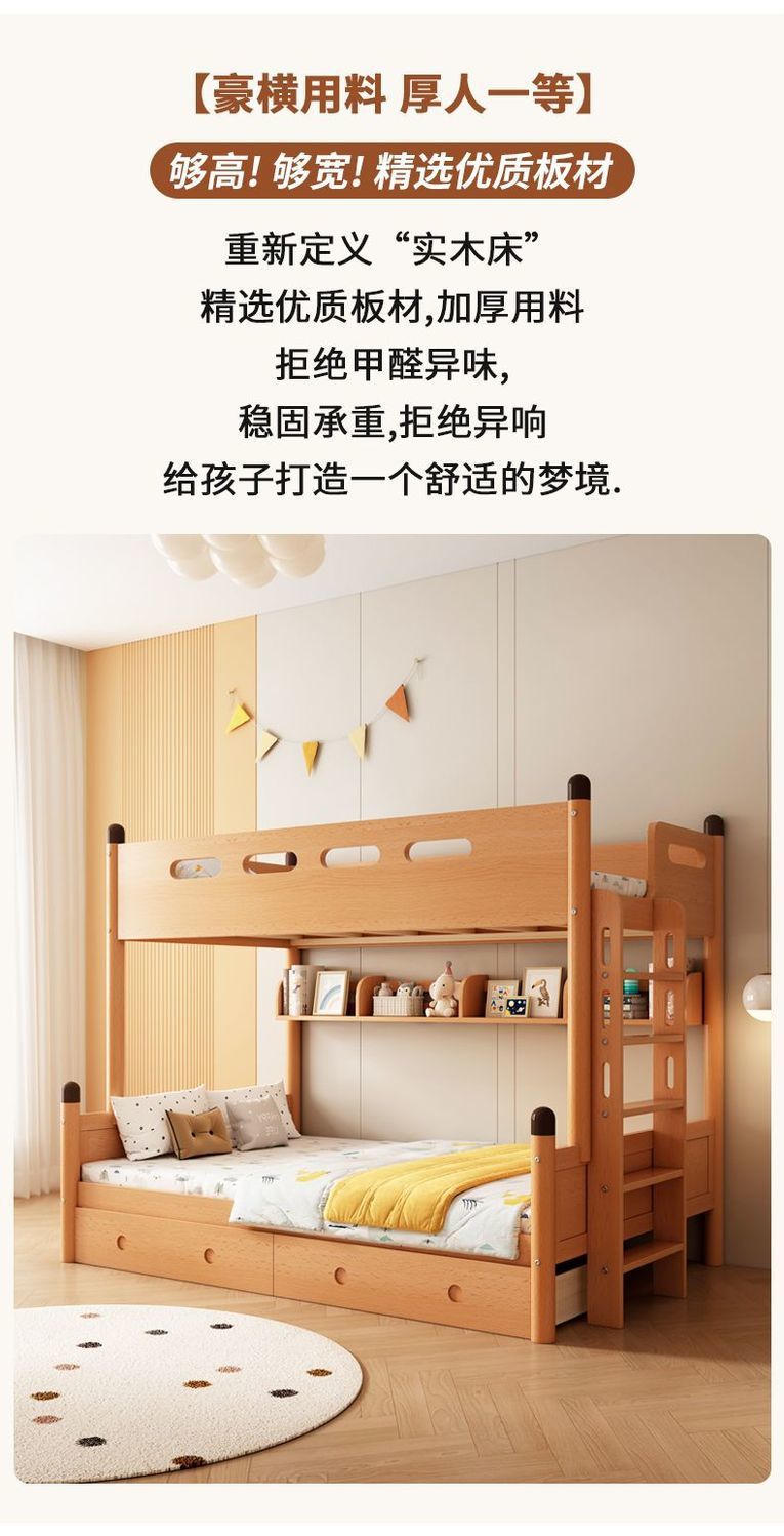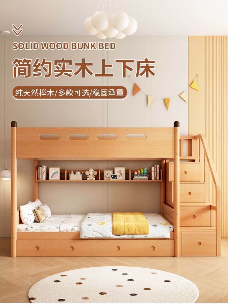 단단한 나무 어린이 이층 침대, 이층 다기능 소형 너도밤 나무 라이트 럭셔리 이층 침대, 이층 침대스토어 가기