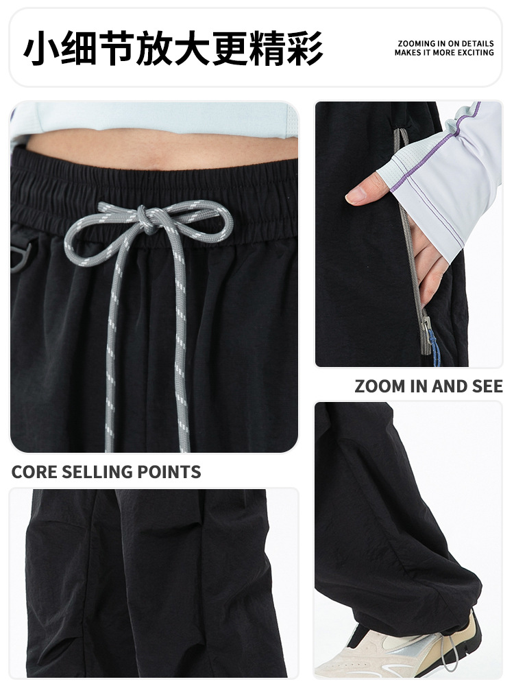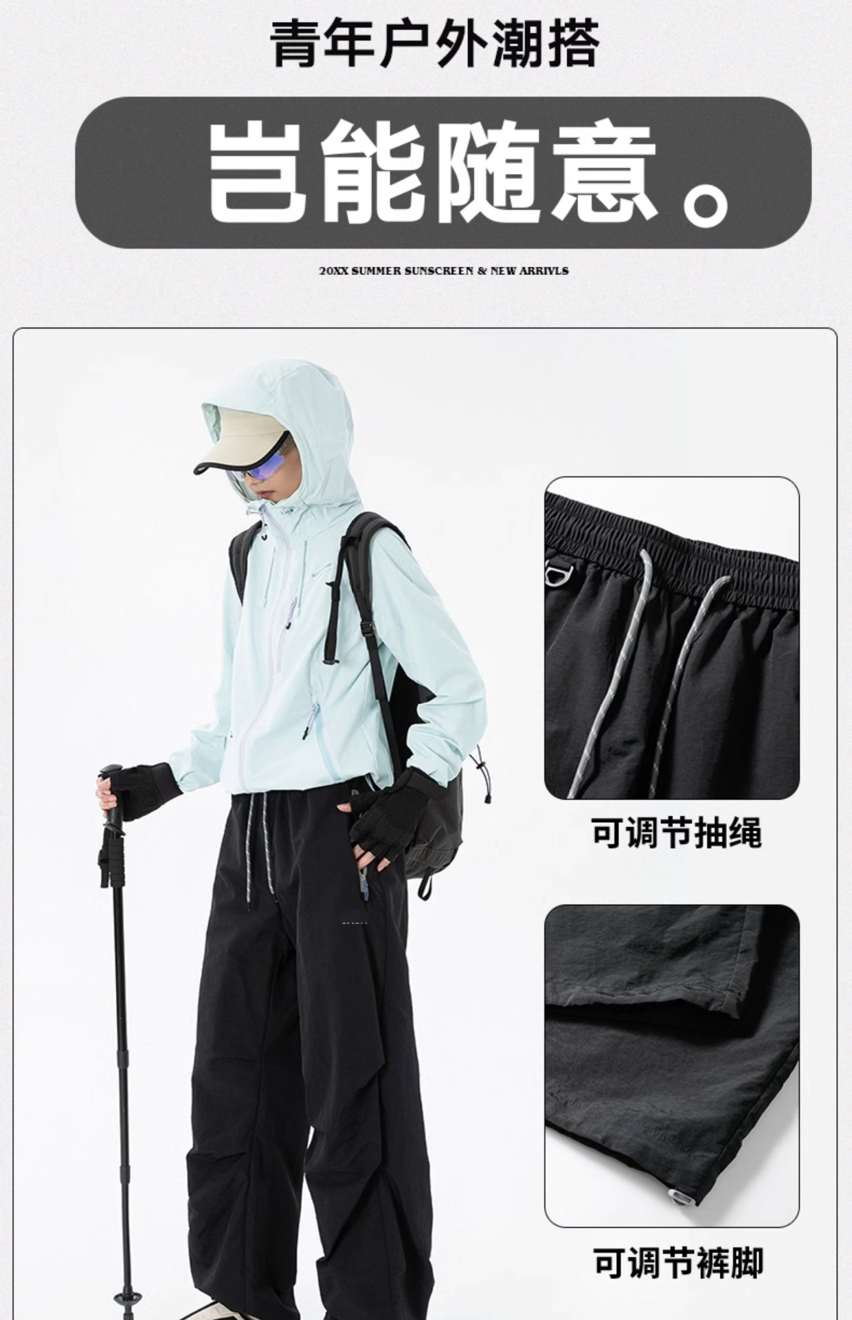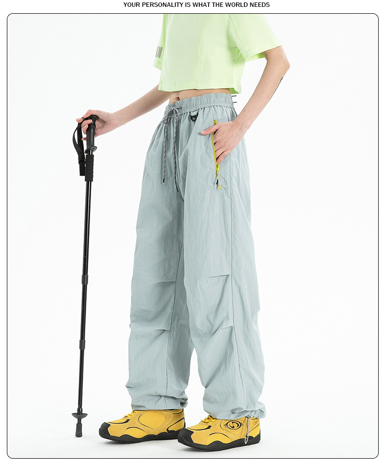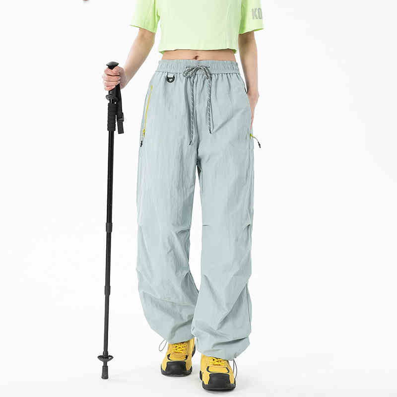 여성을위한 빅 브랜드 속건성 작업복 여름 얼음 실크 얇은 자외선 차단 넓은 다리 낙하산 바지 야외 등산 스포츠 바지스토어 가기