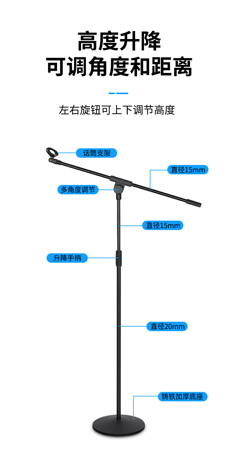 • [풀 메탈 웨이티드 베이스] 업그레이드된 크로스바 조절형 마이크 클립 스타일