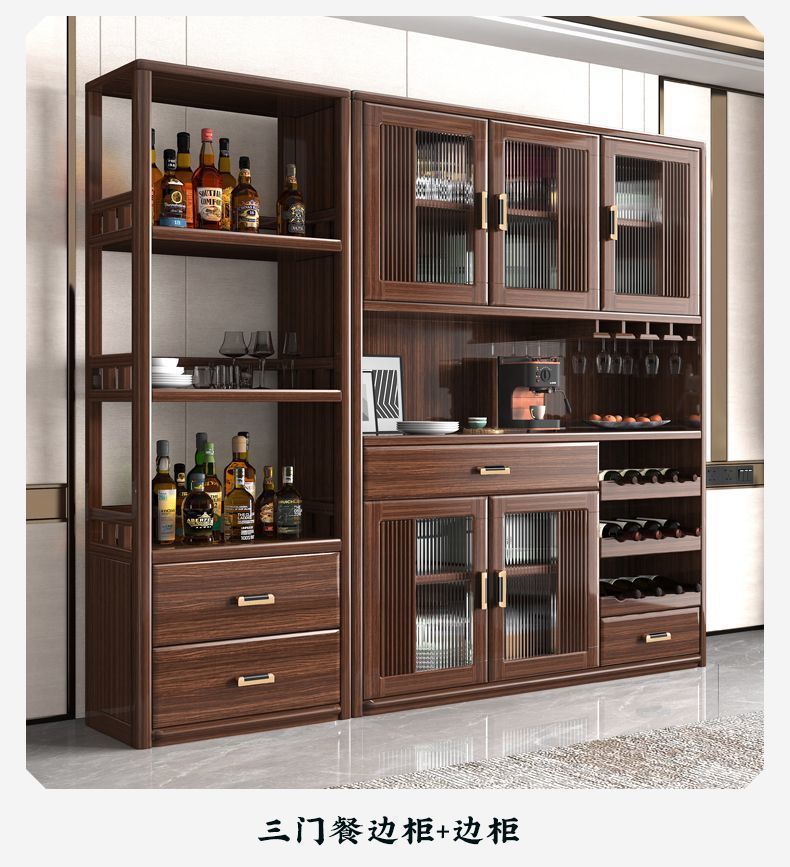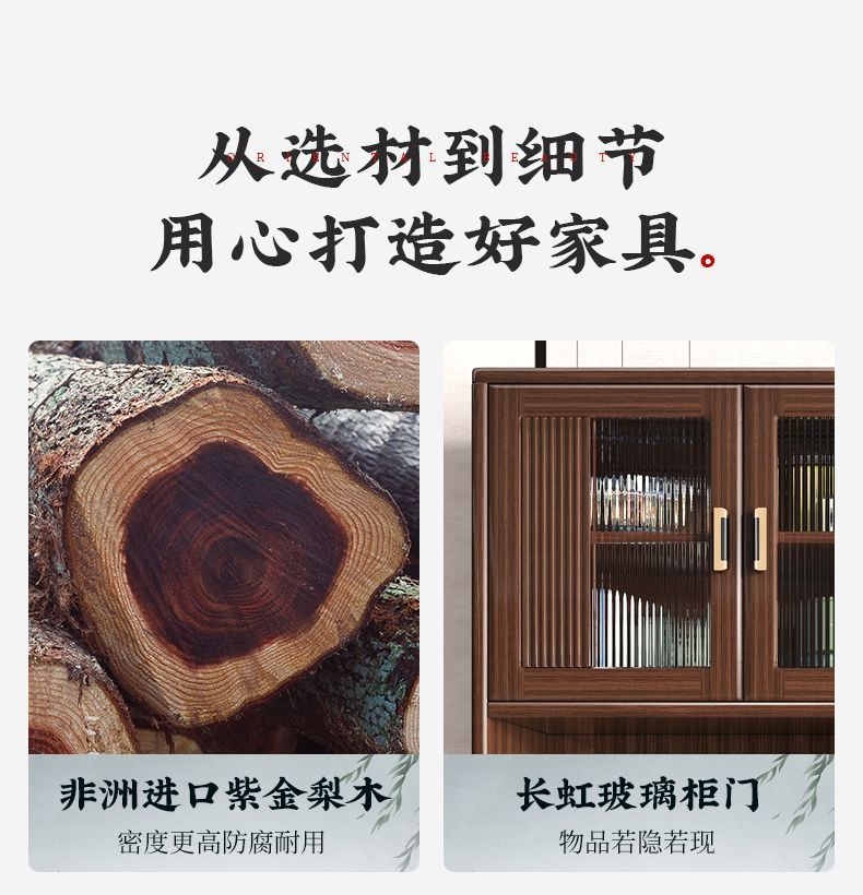 새로운 중국 스타일의 보라색 금 배나무 단단한 나무 찬장 벽 일체형 고급 와인 캐비닛 거실 주방 대용량 보관 캐비닛