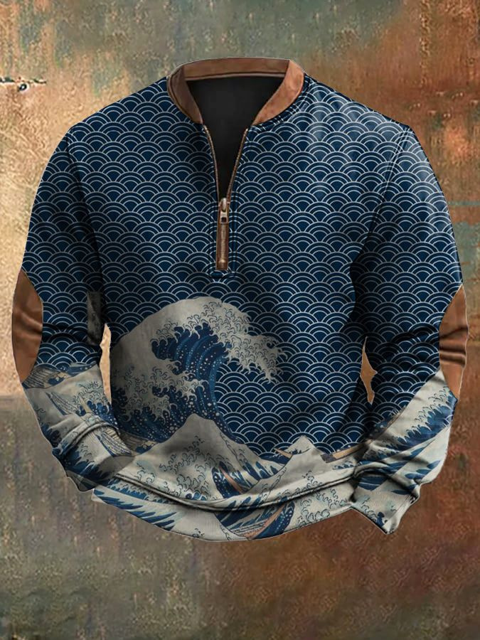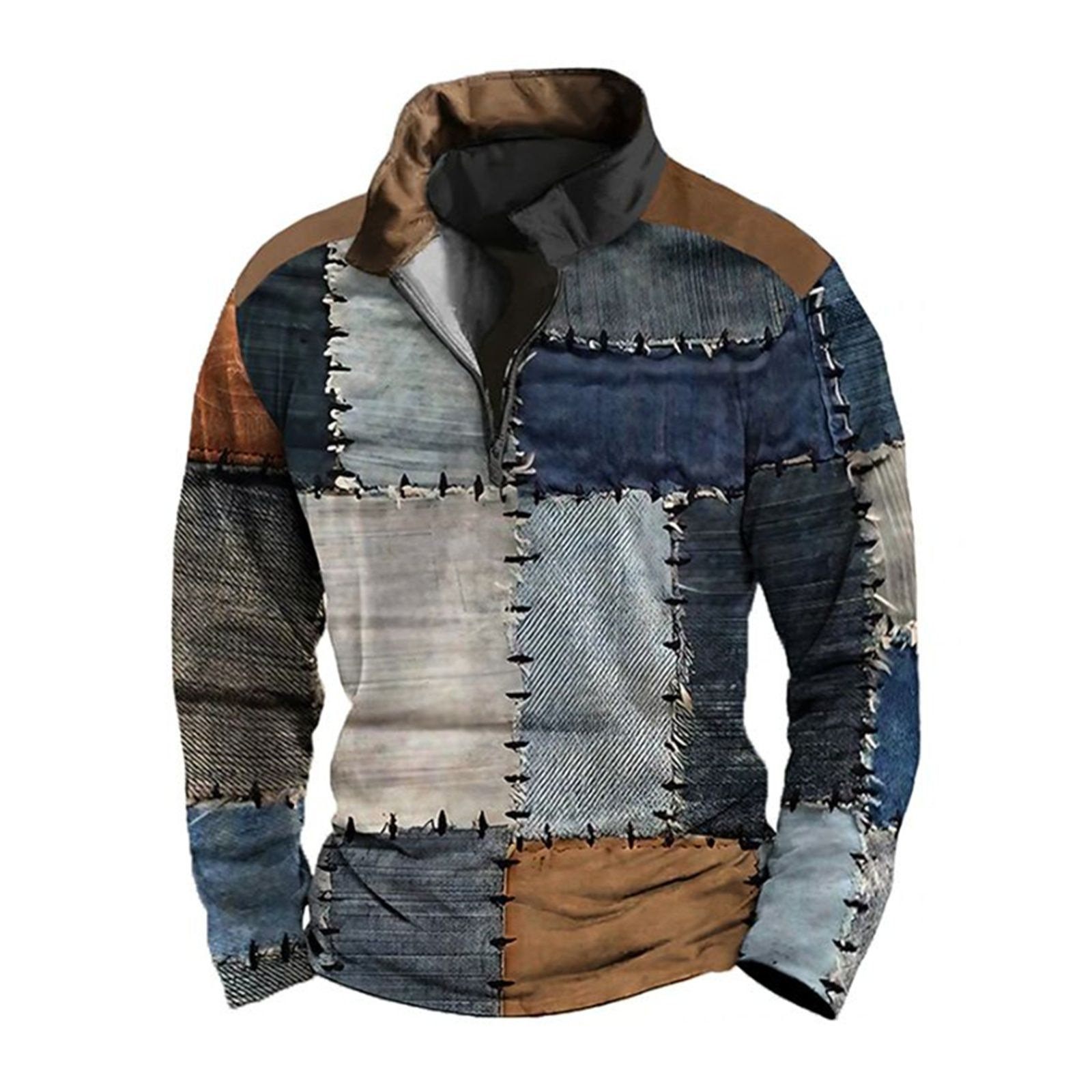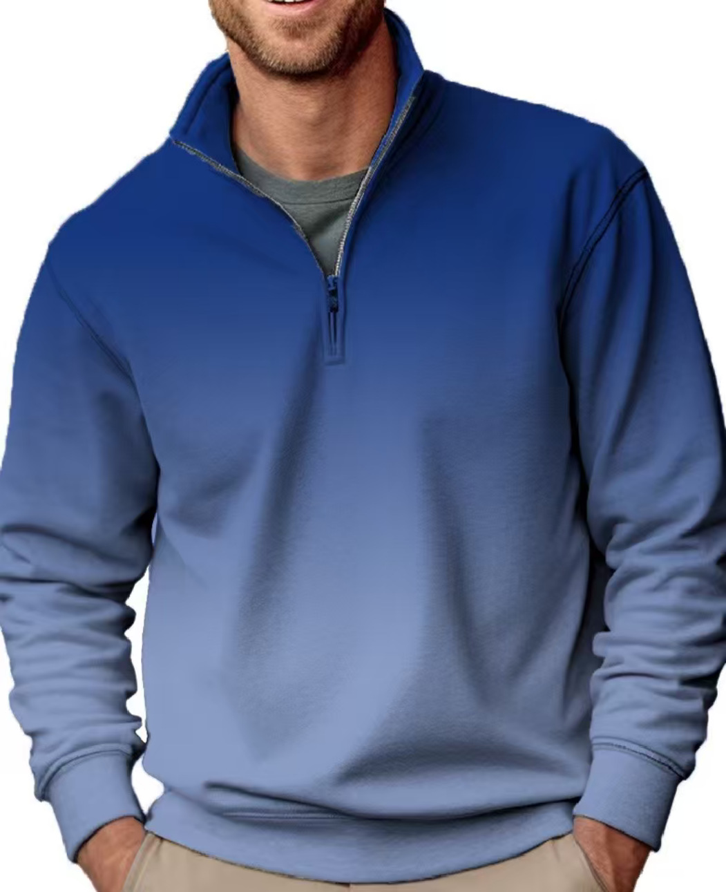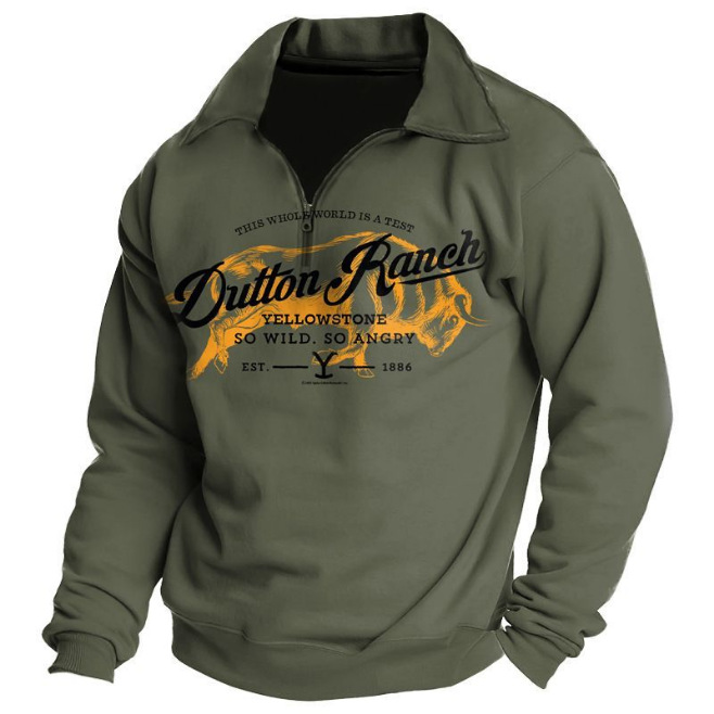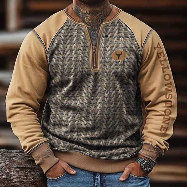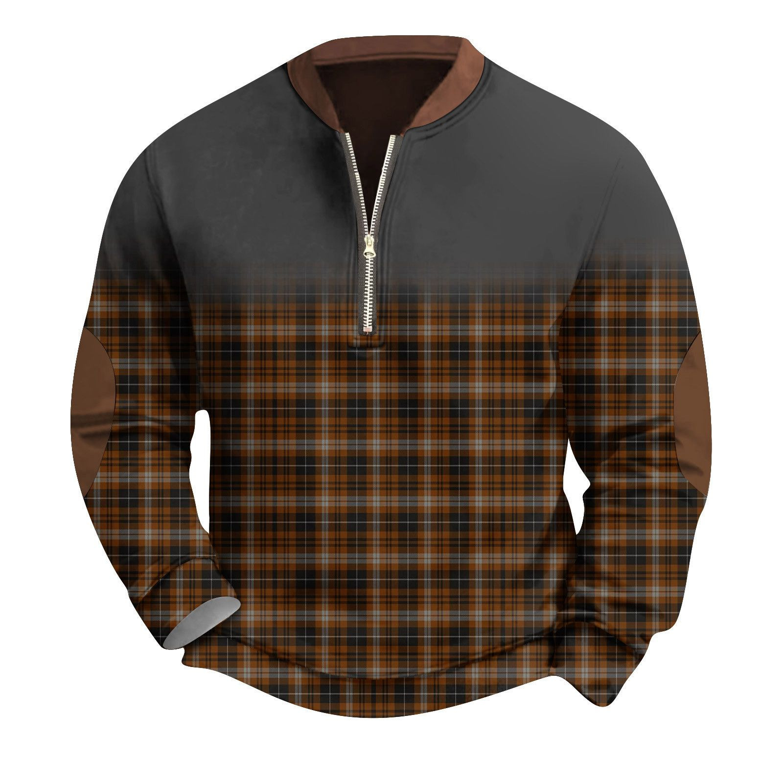 남성용 크로스보더 유럽 및 미국 폴로 버클 스웨트셔츠 3D 프린트 남성용 하프 지퍼 스웨트셔츠 유럽 및 미국 가을 겨울 프린트 스웨트셔츠