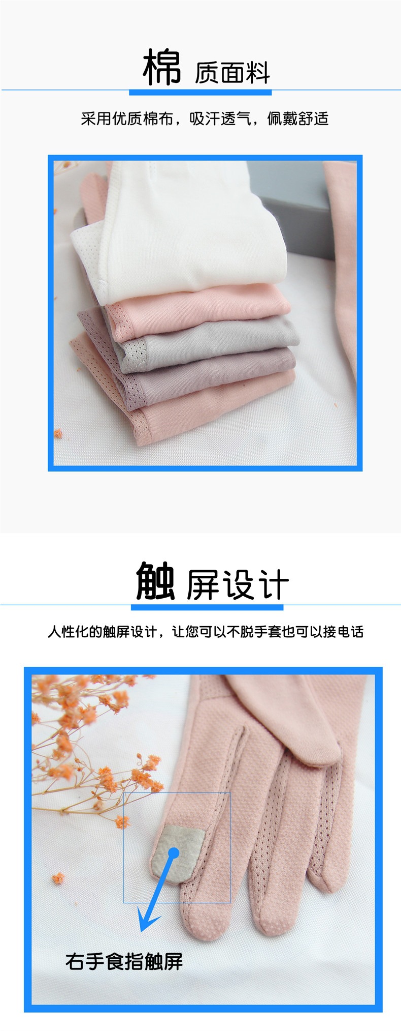 여성용 자외선 차단 장갑, 자외선 차단, 운전 및 라이딩, 여름 순면 터치 스크린, 얇고 통기성이 있으며 미끄럼 방지, 라이딩 핸드 가드, 봄