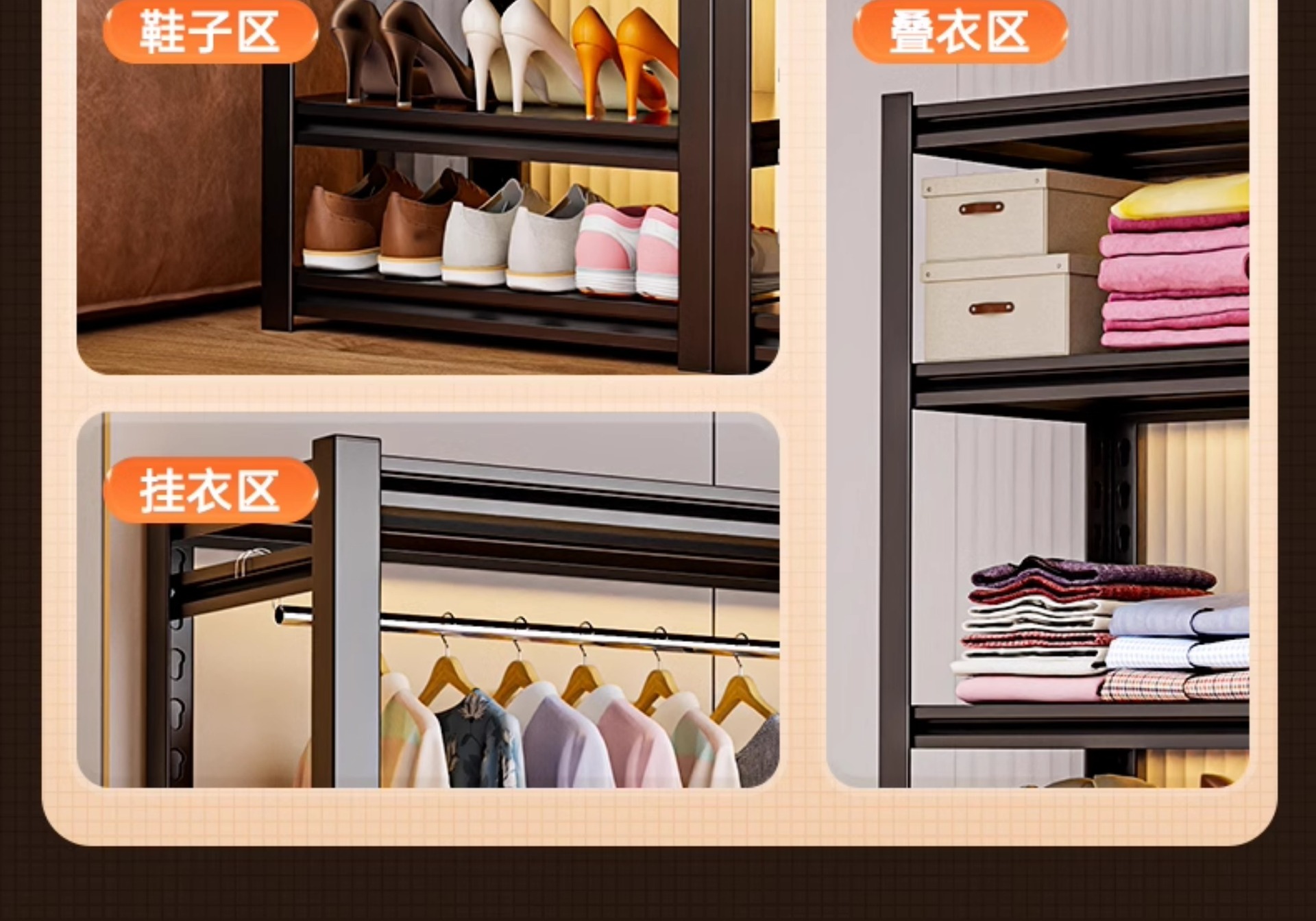 가정용 간단한 옷장 개방형 임대 침실 금속 철 옷장 코너 강철 옷걸이 세트 장치 s^