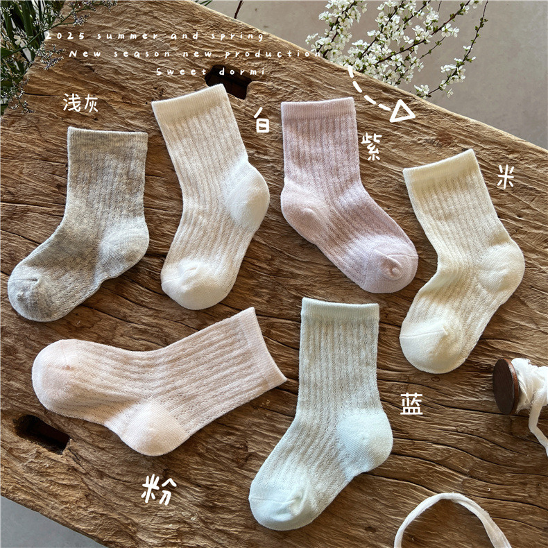 MG878 여름 초박형 어린이 양말 소녀 그물 컬러 자카드 메쉬 양말 아이스크림 컬러 면 양말