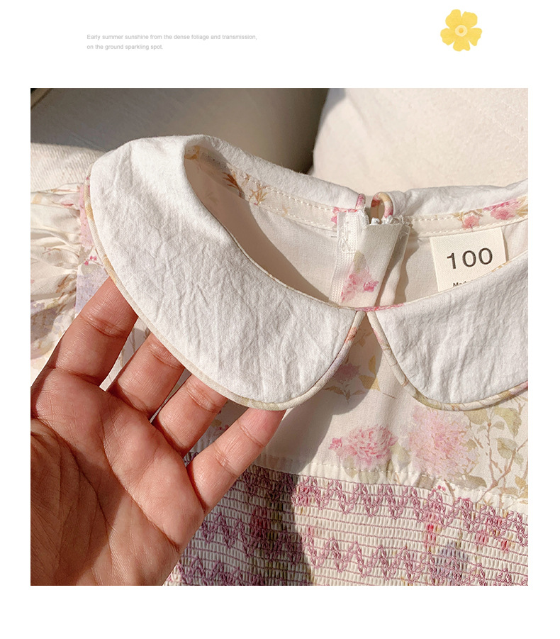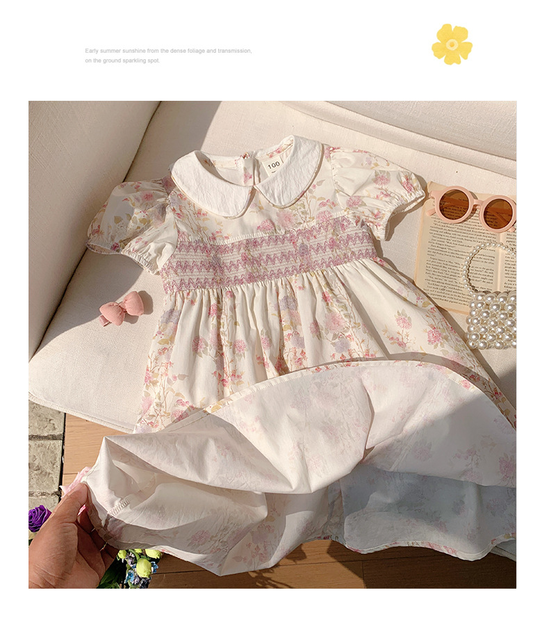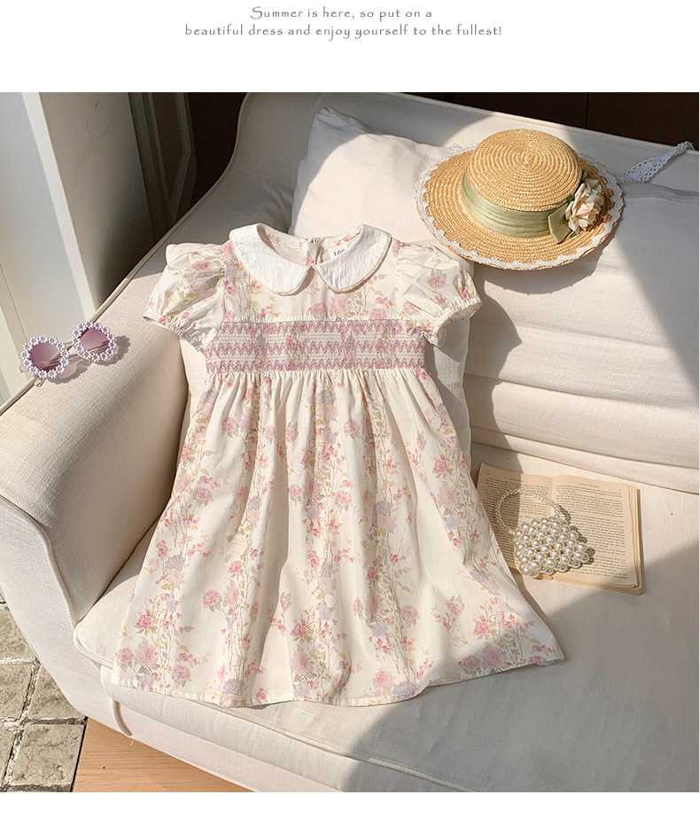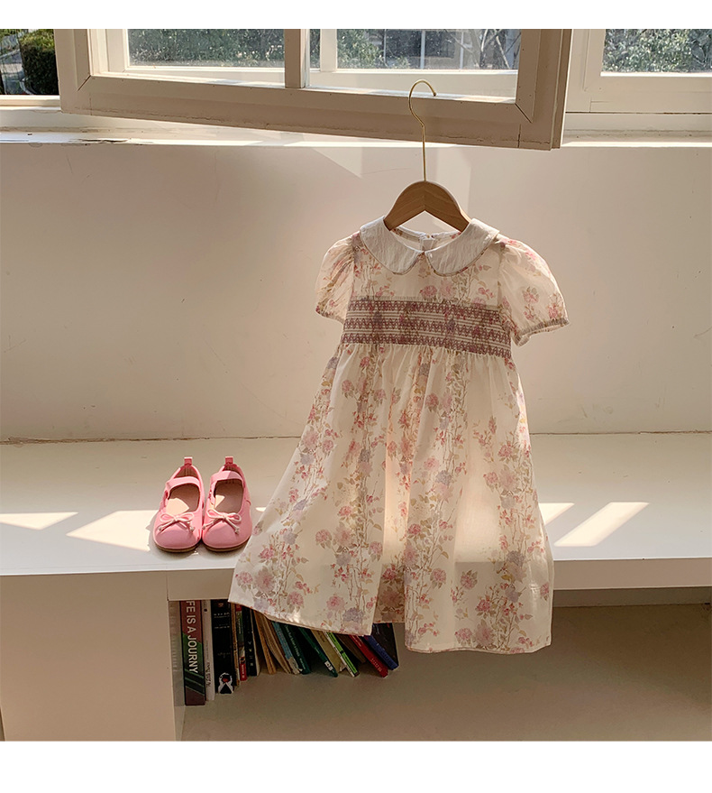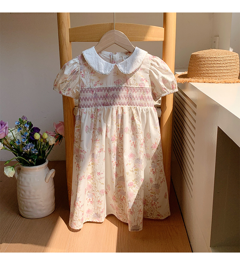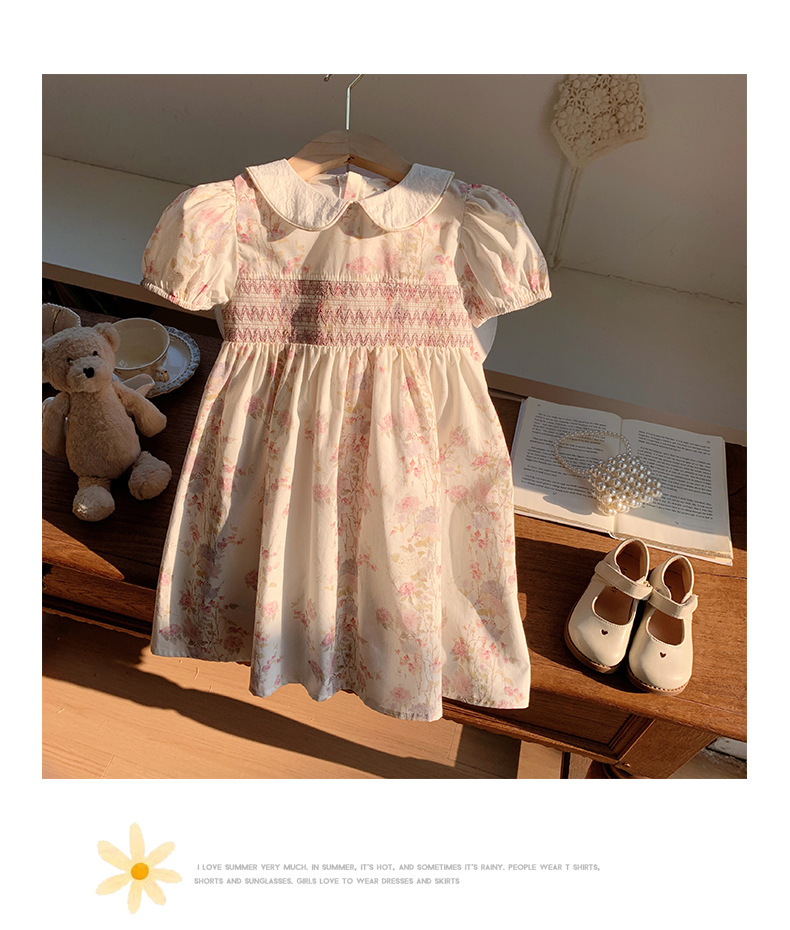 한국 스타일 아동복 프랑스 스타일 꽃 호흡 우아한 소녀의 원피스 2025 여름 인형 칼라 짧은 소매 어린이 치마스토어 가기