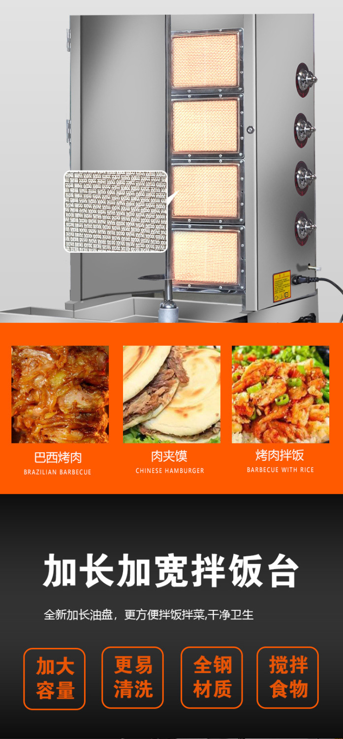 가스 터키식 바베큐 기계 전기 고기 샌드위치 바베큐 비빔밥 기계 자동 상업용 회전식 브라질 바베큐 스토브