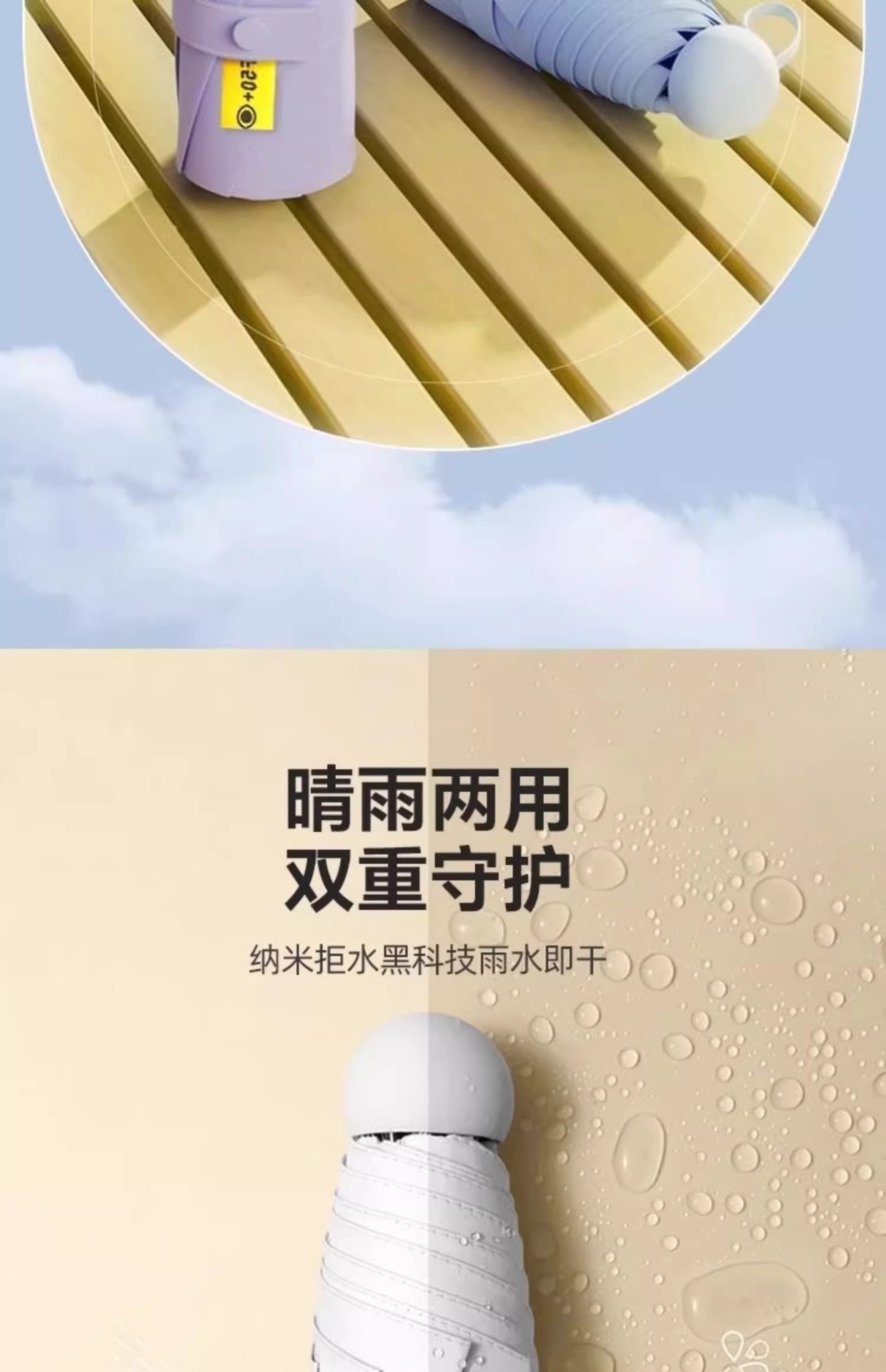 미니 캡슐 작은 신선한 스타일 접는 햇빛 우산 검은 접착제 선스크린 소형 휴대용 작은 우산 여성용 햇빛과 비 이중 사용스토어 가기