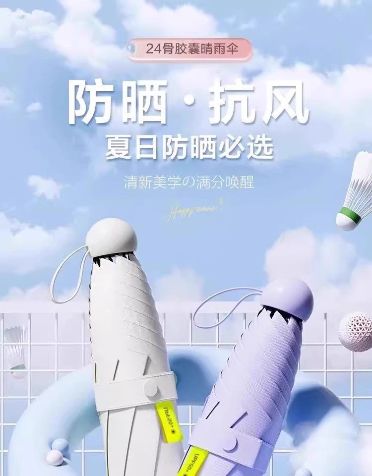 미니 캡슐 작은 신선한 스타일 접는 햇빛 우산 검은 접착제 선스크린 소형 휴대용 작은 우산 여성용 햇빛과 비 이중 사용